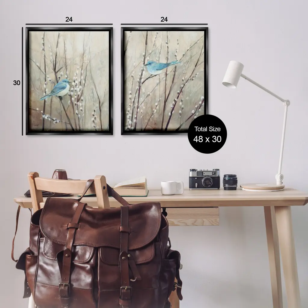 Stupell Peaceful Perched Blue Birds Framed Floater Canvas Wall Art Design By Julia Purinton (Set Of 2) - 25 X 31 - Black