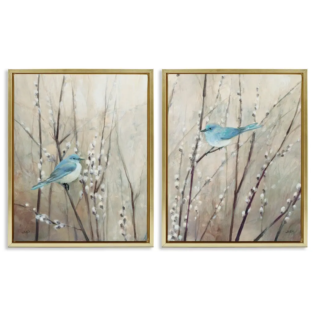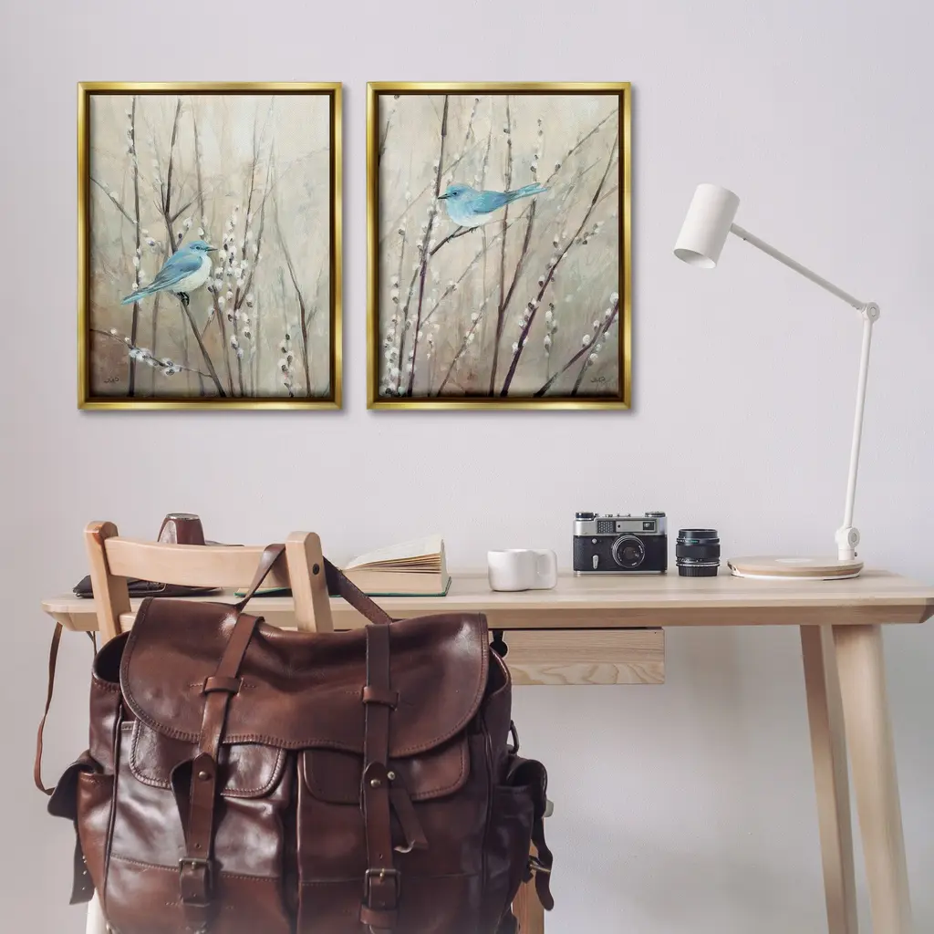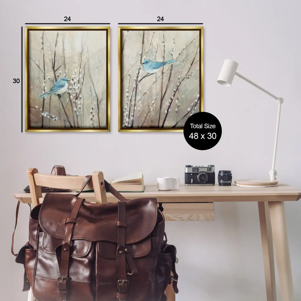 Stupell Peaceful Perched Blue Birds Framed Floater Canvas Wall Art Design By Julia Purinton (Set Of 2) - 25 X 31 - Gold