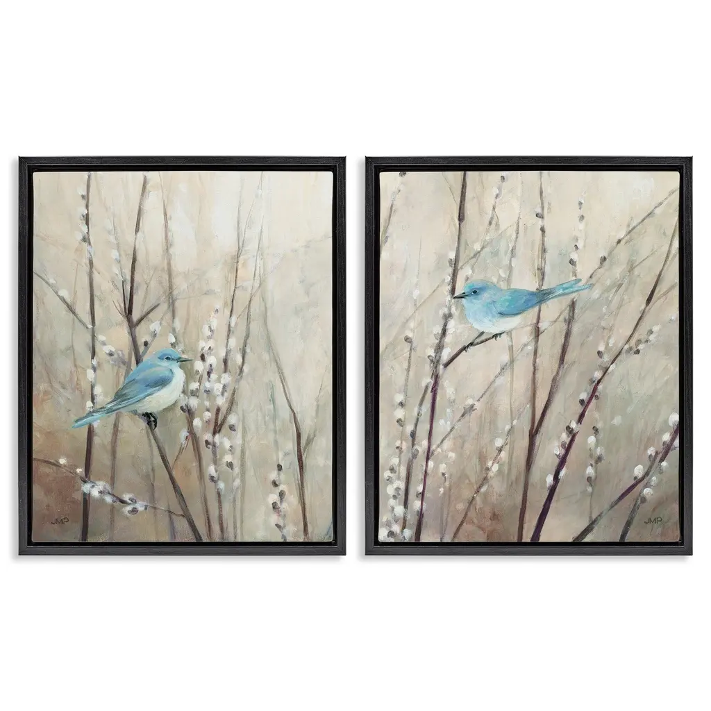 Elevate your home or office to the next level with Stupell Framed Floating Canvas Wall Art. Our premium hand-stretched canvas is mounted securely into a sturdy lightweight frame. The museum-style gap between the wrapped canvas and the box frame gives the illusion of floating artwork. Stupell Wall Art is made in the USA.Features: Dimensions: 2 Piece Set, Each Frame is 17 x 1.7 x 21Two Piece Floater Framed Canvas are available as 17x21 or 25x31 Panels. All Floater Frame Products have a 1.7" Depth.Wall Art is Ready to Hang with Hardware Free Hanging. No Installation required. For Easy Set Up Lean or Layer Artwork on Shelf or Against Wall. Artwork is Permently Fixed into the Frame.Our elevated 1.7" Thick Floating Frame is the perfect complement to our canvas style Wall Art. We use only the highest quality inks in house with industry leading printing solutions. Canvas is hand stretched over a durable wood foundation and then mounted securly into a Modern Box Frame. Made in the USA.Artwork Relates To: Botanical, Nature, Branch, Bird, AnimalDesign by Julia Purinton