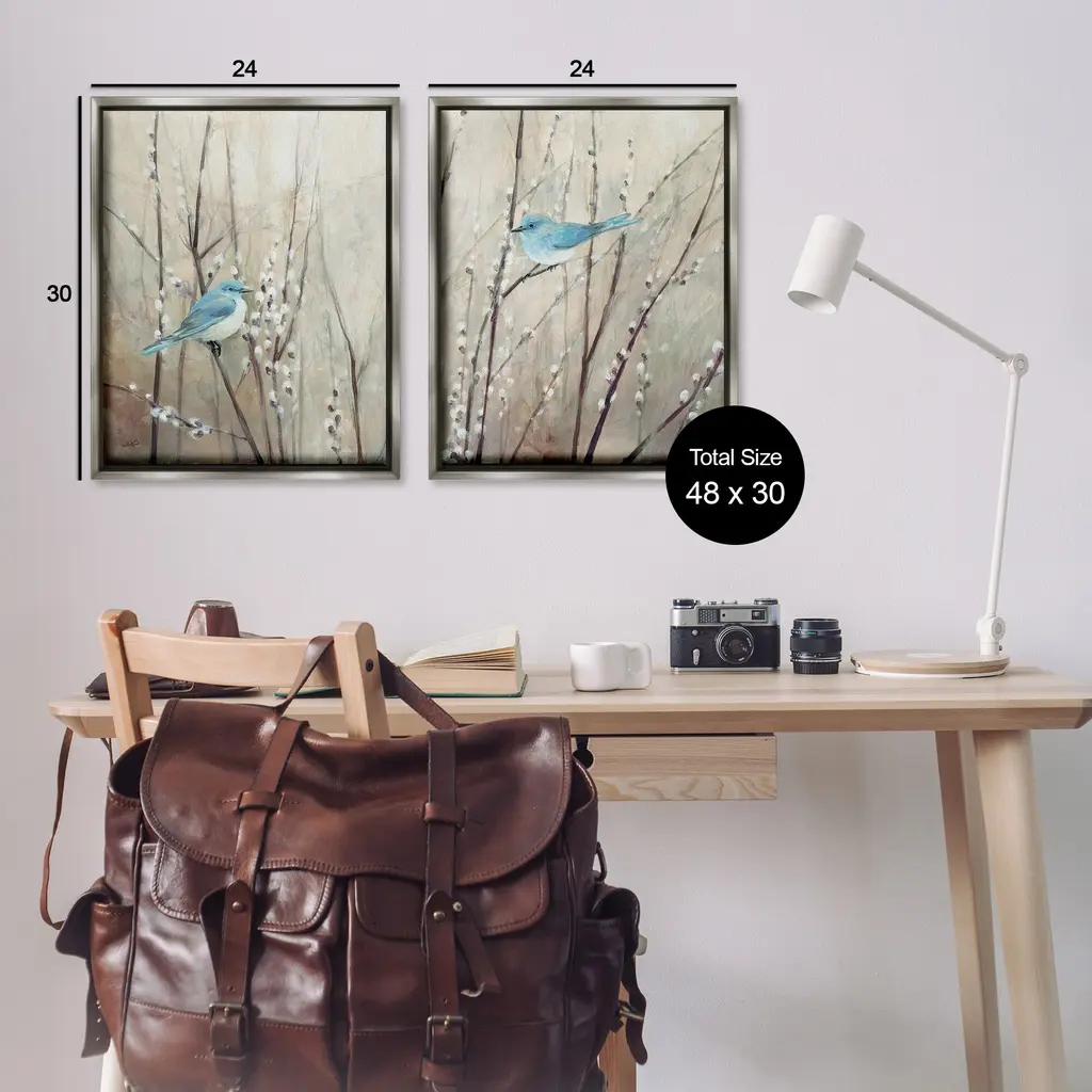 Elevate your home or office to the next level with Stupell Framed Floating Canvas Wall Art. Our premium hand-stretched canvas is mounted securely into a sturdy lightweight frame. The museum-style gap between the wrapped canvas and the box frame gives the illusion of floating artwork. Stupell Wall Art is made in the USA.Features: Dimensions: 2 Piece Set, Each Frame is 17 x 1.7 x 21Two Piece Floater Framed Canvas are available as 17x21 or 25x31 Panels. All Floater Frame Products have a 1.7" Depth.Wall Art is Ready to Hang with Hardware Free Hanging. No Installation required. For Easy Set Up Lean or Layer Artwork on Shelf or Against Wall. Artwork is Permently Fixed into the Frame.Our elevated 1.7" Thick Floating Frame is the perfect complement to our canvas style Wall Art. We use only the highest quality inks in house with industry leading printing solutions. Canvas is hand stretched over a durable wood foundation and then mounted securly into a Modern Box Frame. Made in the USA.Artwork Relates To: Botanical, Nature, Branch, Bird, AnimalDesign by Julia Purinton