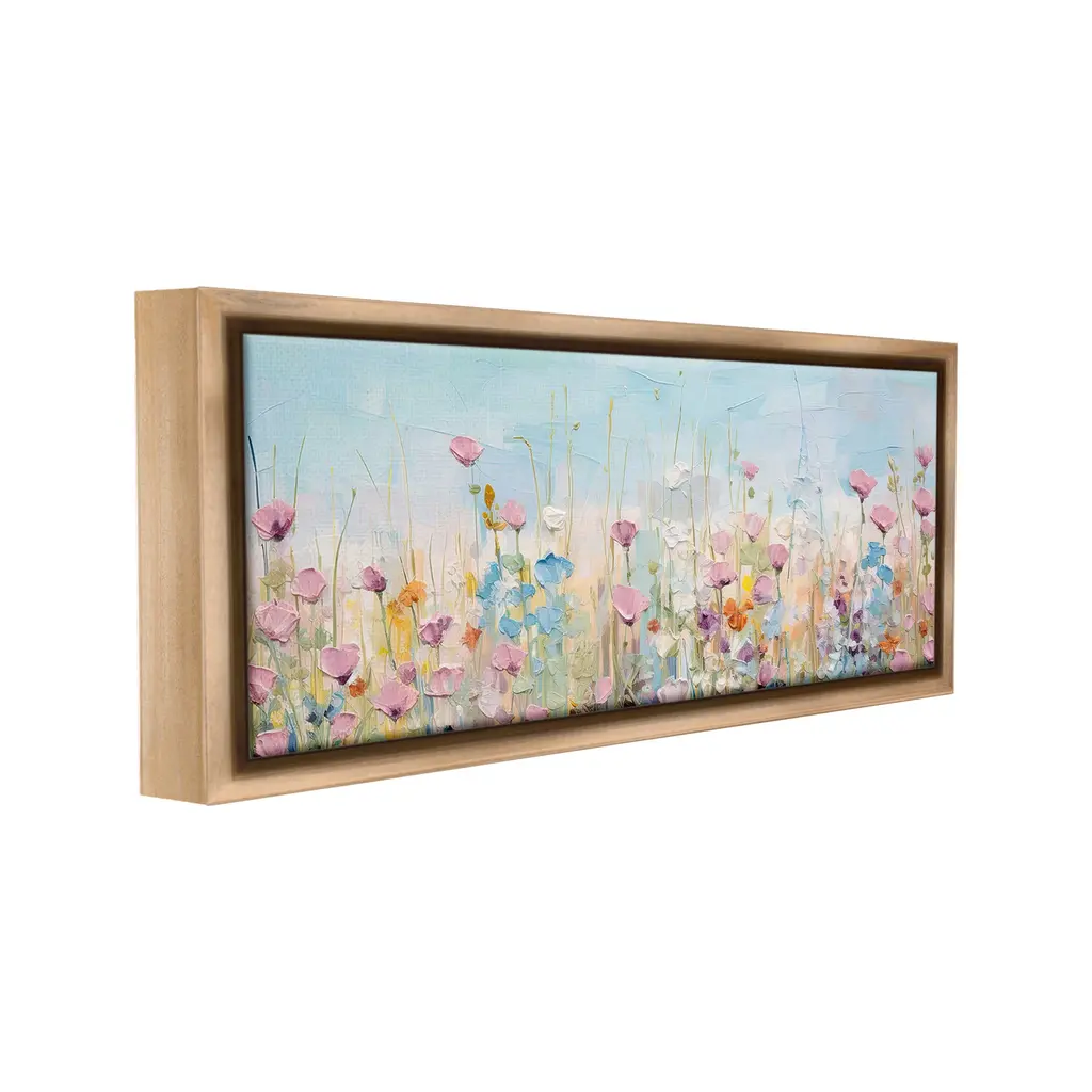 Elevate your home or office to the next level with Stupell Framed Floating Canvas Wall Art. Our premium hand-stretched canvas is mounted securely into a sturdy lightweight frame. The museum-style gap between the wrapped canvas and the box frame gives the illusion of floating artwork. Stupell Wall Art is made in the USA.Features: Dimensions: 25 x 1.7 x 11 Frame, 24 x 1.5 x 10 Canvas ArtFloating Frame Canvas Products are available in sizes 25"x11" and 31"x14". All Floating Frame Canvas Products have a 1.7" Depth.Wall Art is Ready to Hang with Hardware Free Hanging. No Installation required. For Easy Set Up Lean or Layer Artwork on Shelf or Against Wall. Artwork is Permently Fixed into the Frame.Our elevated 1.7" Thick Floating Frame is the perfect complement to our canvas style Wall Art. We use only the highest quality inks in house with industry leading printing solutions. Canvas is hand stretched over a durable wood foundation and then mounted securly into a Modern Box Frame. Made in the USA.Artwork Relates To: Flower, Plant, Petal, Nature, Modern, Landscape, Meadow, Botanical, Abstract, Modern, PaintingDesign by Gina Kelly
