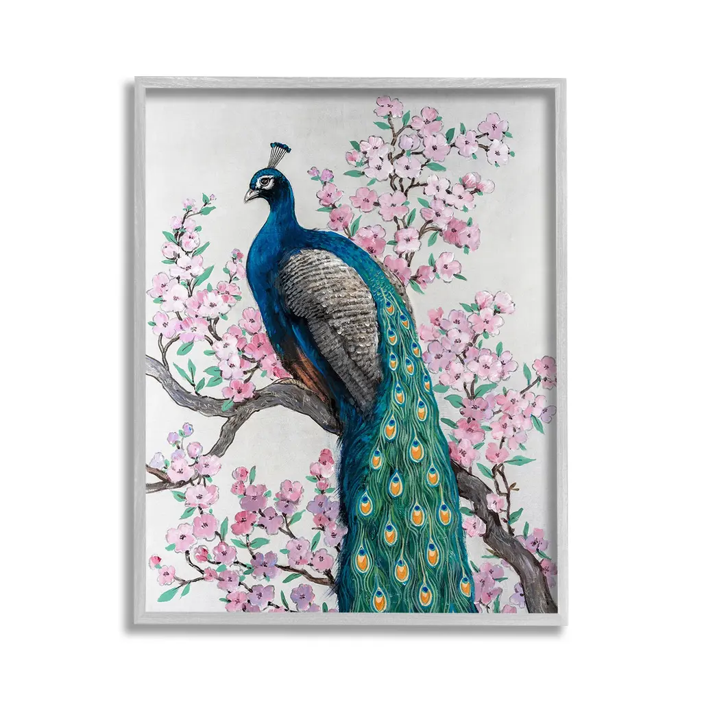 Add dimension to any room with our textured Framed Giclee Artwork. Our framed artwork is securely mounted into a 1.5-inch thick wood grain frame and ready to hang. Frames are available in three alluring styles: black, gray farmhouse and white. In addition, you should check out our oversized options if you want a statement piece. Stupell Wall Art is made in the USA.Features: Dimensions: 11 x 1.5 x 14 FramedFramed Giclee Products are available in the sizes 11"x14", 16"x20" or 24"x30". All Framed Giclee Products have a 1.5" Depth. Wall Art is Ready to Hang with Hardware Free Hanging. No installation required. For Easy Set Up Lean or Layer Artwork on Shelf or Against Wall.Our giclée prints are carefully mounted on a durable MDF backing, and then perfectly finished in a 1.5 inch thick woodgrain frame. Mounted frame colors include black, gray farmhouse and white. Made In USA.Artwork Relates To: Animal, Bird, Peacock, Flower, Floral, Cherry Blossom, NatureDesign by Tim OToole