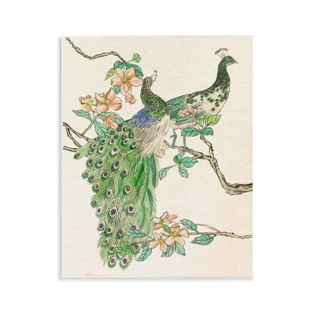Stupell Peacock & Cherry Blossoms Wall Plaque Art Design By Melissa Wang - 11 X 14