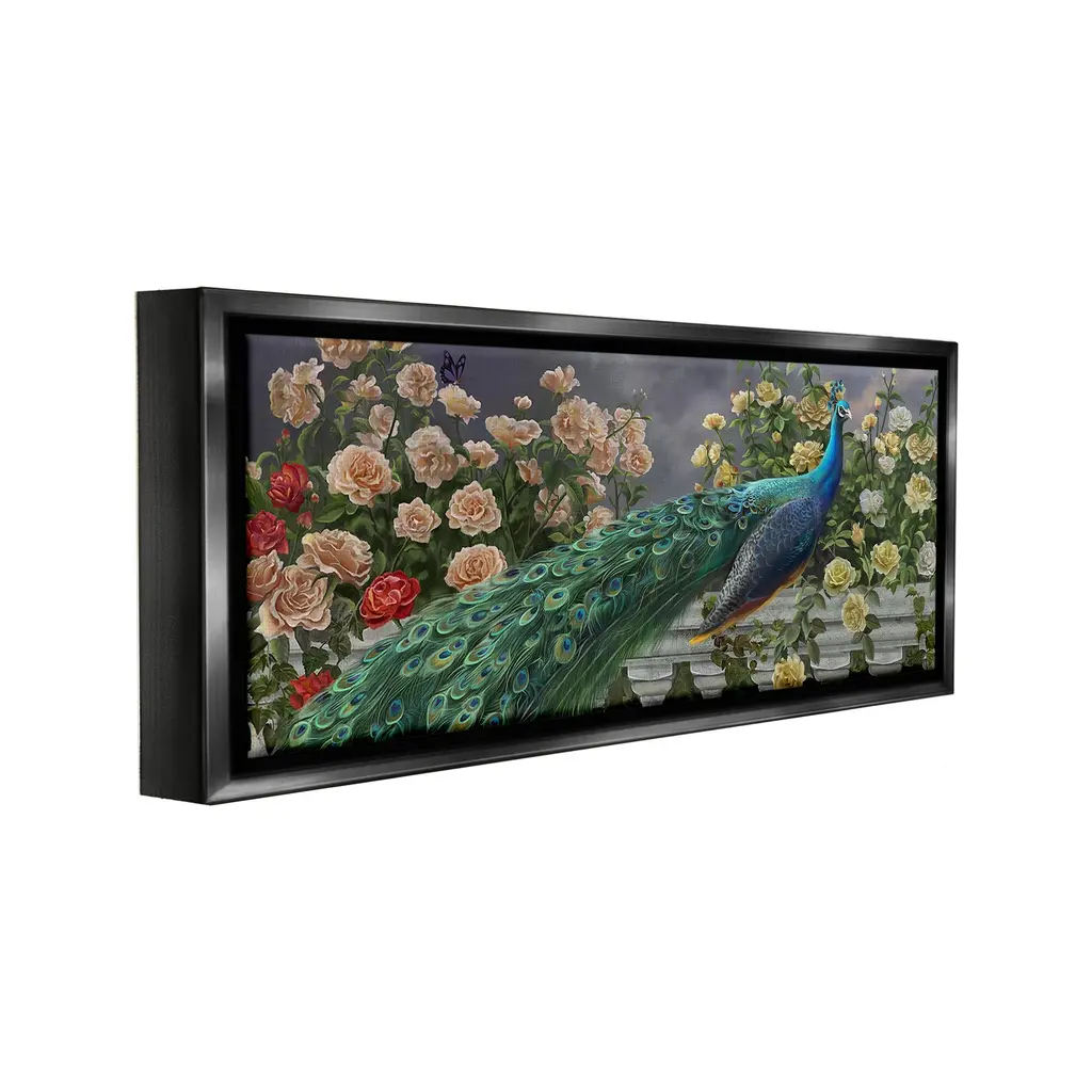 Elevate your home or office to the next level with Stupell Framed Floating Canvas Wall Art. Our premium hand-stretched canvas is mounted securely into a sturdy lightweight frame. The museum-style gap between the wrapped canvas and the box frame gives the illusion of floating artwork. Stupell Wall Art is made in the USA.Features: Dimensions: 25 x 1.7 x 11 Frame, 24 x 1.5 x 10 Canvas ArtFloating Frame Canvas Products are available in sizes 25"x11" and 31"x14". All Floating Frame Canvas Products have a 1.7" Depth.Wall Art is Ready to Hang with Hardware Free Hanging. No Installation required. For Easy Set Up Lean or Layer Artwork on Shelf or Against Wall. Artwork is Permently Fixed into the Frame.Our elevated 1.7" Thick Floating Frame is the perfect complement to our canvas style Wall Art. We use only the highest quality inks in house with industry leading printing solutions. Canvas is hand stretched over a durable wood foundation and then mounted securly into a Modern Box Frame. Made in the USA.Artwork Relates To: Flower, Plant, Rose, Animal, Bird, Peacock, Blossom, Country, Traditional, CottageDesign by Nene Thomas