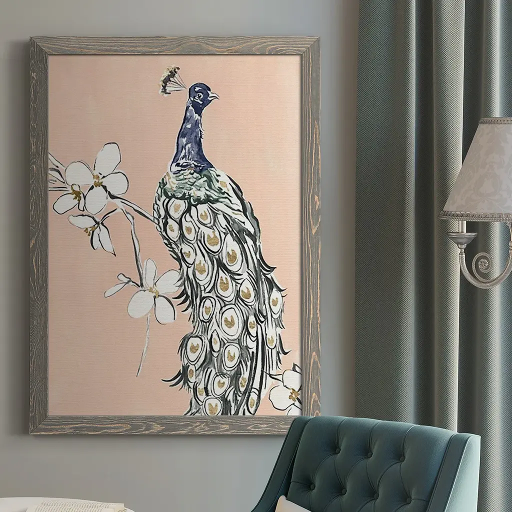 Stupell Peacock & Cottage Blossoms Framed Giclee Art Design By Nene Thomas - 30 X 13 - Grey