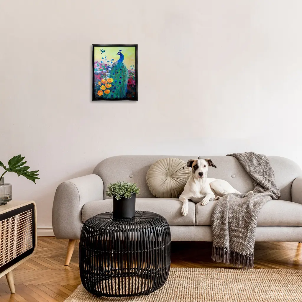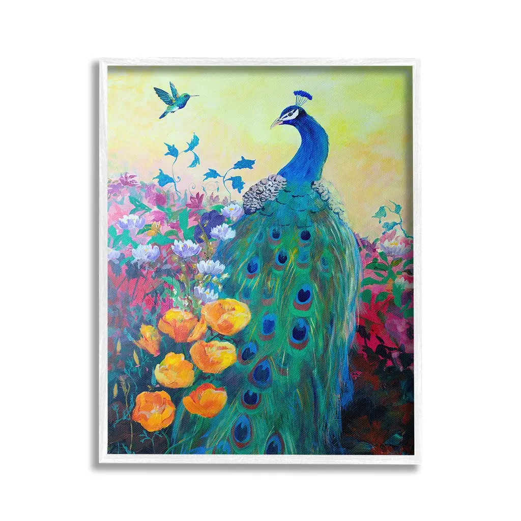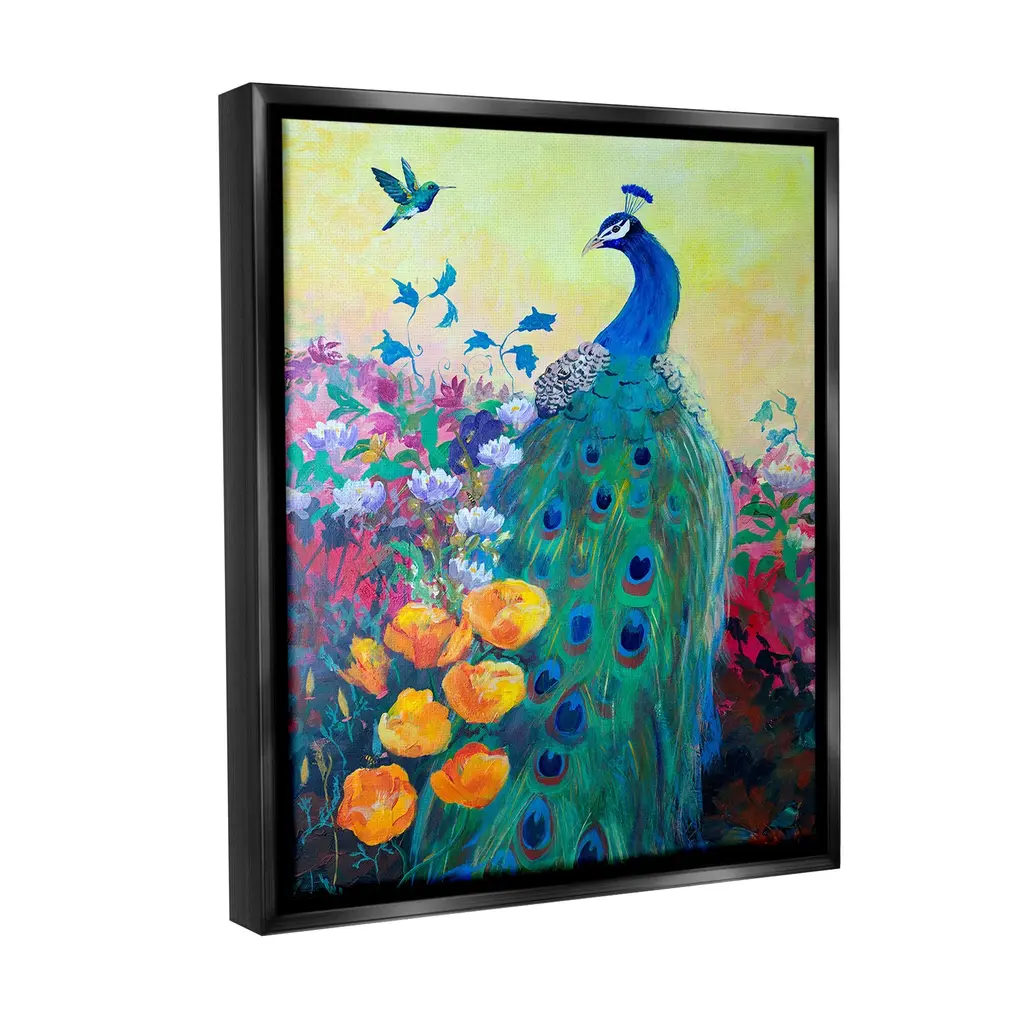 Elevate your home or office to the next level with Stupell Framed Floating Canvas Wall Art. Our premium hand-stretched canvas is mounted securely into a sturdy lightweight frame. The museum-style gap between the wrapped canvas and the box frame gives the illusion of floating artwork. Stupell Wall Art is made in the USA.Features: Dimensions: 17 x 1.7 x 21 Frame, 16 x 1.5 x 20 Canvas ArtFloating Frame Canvas Products are available in sizes 17"x21" and 25"x31". All Floating Frame Canvas Products have a 1.7" Depth.Wall Art is Ready to Hang with Hardware Free Hanging. No Installation required. For Easy Set Up Lean or Layer Artwork on Shelf or Against Wall. Artwork is Permently Fixed into the Frame.Our elevated 1.7" Thick Floating Frame is the perfect complement to our canvas style Wall Art. We use only the highest quality inks in house with industry leading printing solutions. Canvas is hand stretched over a durable wood foundation and then mounted securly into a Modern Box Frame. Made in the USA.Artwork Relates To: Modern, Animal, Bird, Peacock, Beak, Hummingbird, Floral, Flower, GardenDesign by Robin Maria