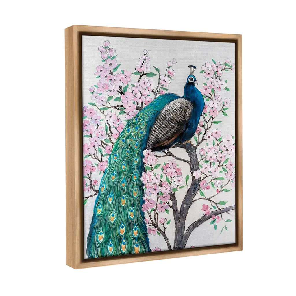 Elevate your home or office to the next level with Stupell Framed Floating Canvas Wall Art. Our premium hand-stretched canvas is mounted securely into a sturdy lightweight frame. The museum-style gap between the wrapped canvas and the box frame gives the illusion of floating artwork. Stupell Wall Art is made in the USA.Features: Dimensions: 17 x 1.7 x 21 Frame, 16 x 1.5 x 20 Canvas ArtFloating Frame Canvas Products are available in sizes 17"x21" and 25"x31". All Floating Frame Canvas Products have a 1.7" Depth.Wall Art is Ready to Hang with Hardware Free Hanging. No Installation required. For Easy Set Up Lean or Layer Artwork on Shelf or Against Wall. Artwork is Permently Fixed into the Frame.Our elevated 1.7" Thick Floating Frame is the perfect complement to our canvas style Wall Art. We use only the highest quality inks in house with industry leading printing solutions. Canvas is hand stretched over a durable wood foundation and then mounted securly into a Modern Box Frame. Made in the USA.Artwork Relates To: Animal, Bird, Peacock, Flower, Floral, Cherry Blossom, NatureDesign by Tim OToole
