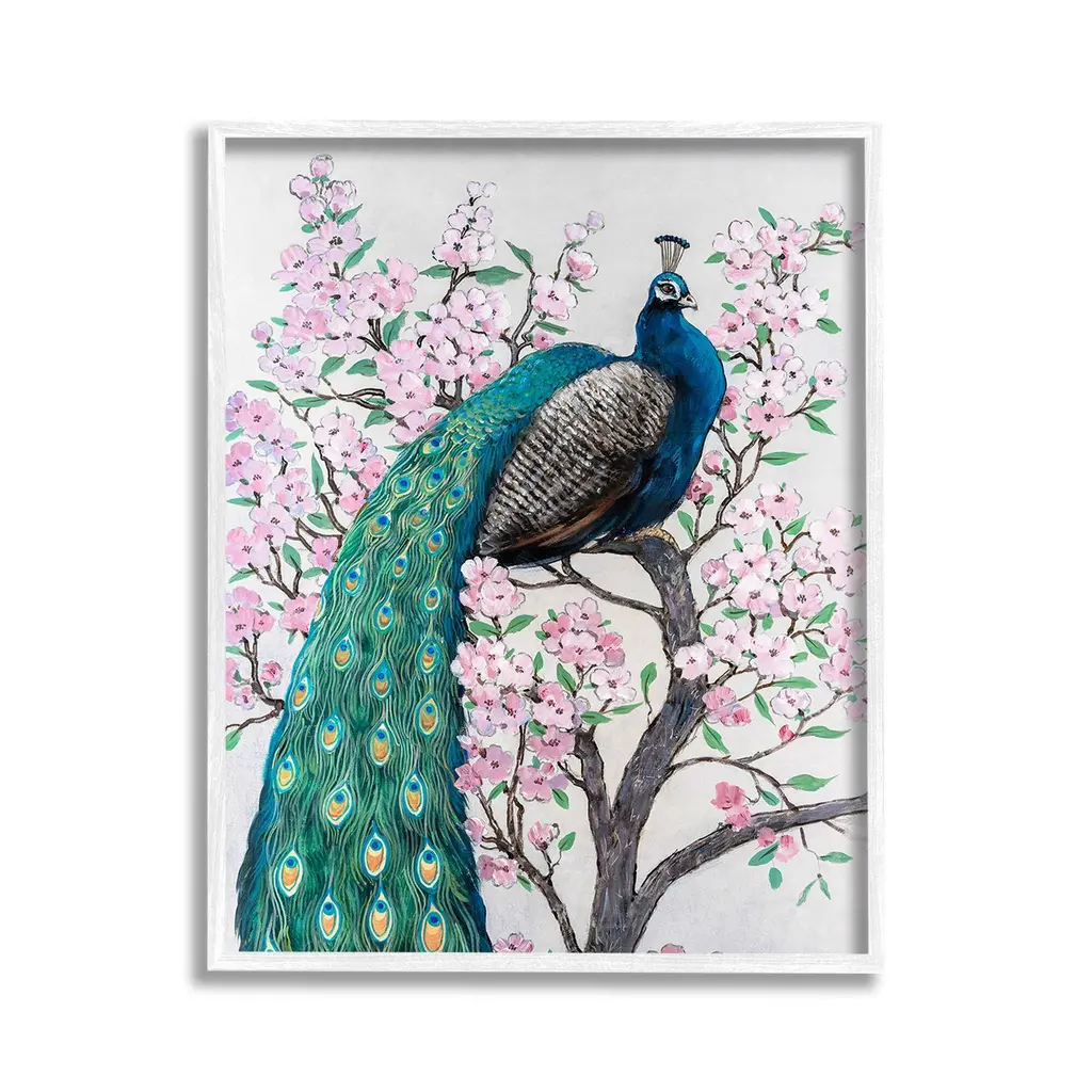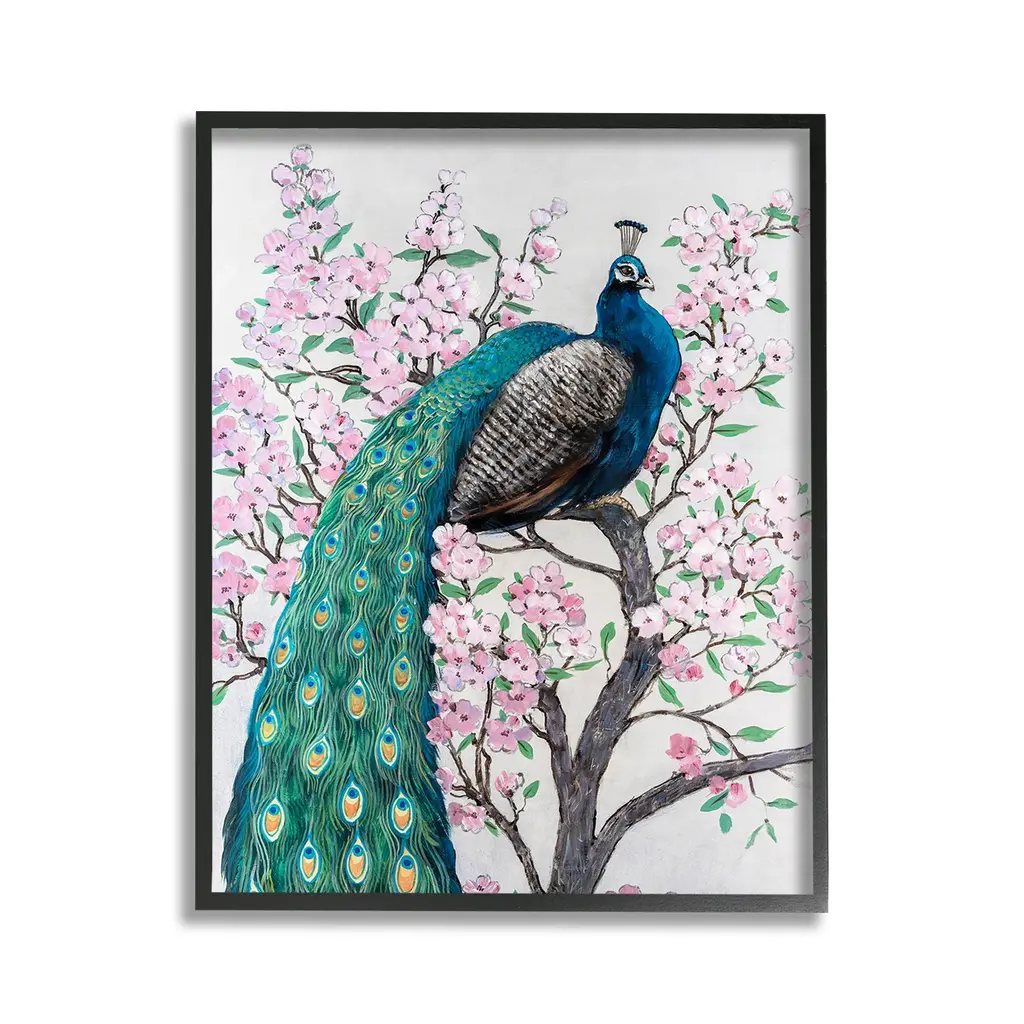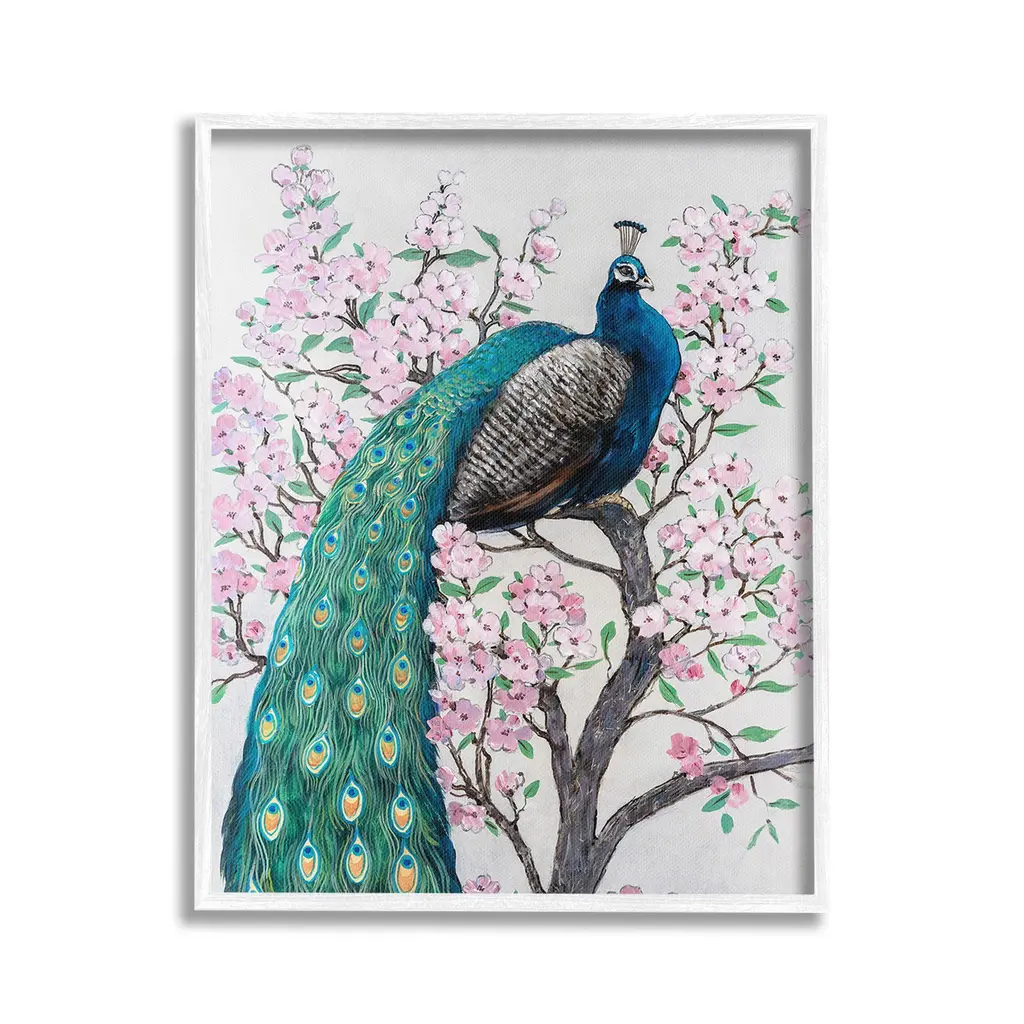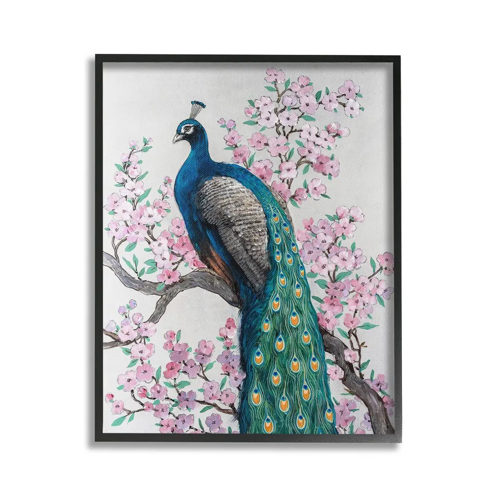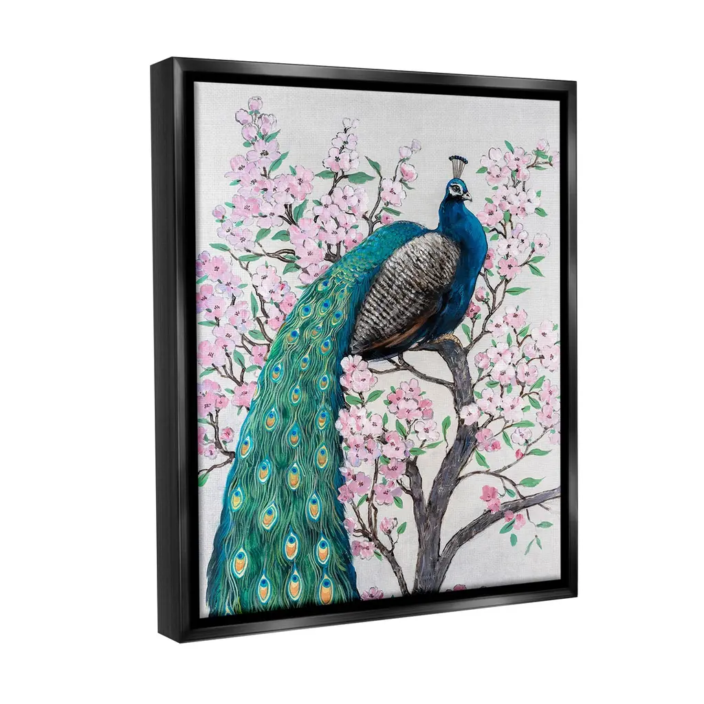 Elevate your home or office to the next level with Stupell Framed Floating Canvas Wall Art. Our premium hand-stretched canvas is mounted securely into a sturdy lightweight frame. The museum-style gap between the wrapped canvas and the box frame gives the illusion of floating artwork. Stupell Wall Art is made in the USA.Features: Dimensions: 17 x 1.7 x 21 Frame, 16 x 1.5 x 20 Canvas ArtFloating Frame Canvas Products are available in sizes 17"x21" and 25"x31". All Floating Frame Canvas Products have a 1.7" Depth.Wall Art is Ready to Hang with Hardware Free Hanging. No Installation required. For Easy Set Up Lean or Layer Artwork on Shelf or Against Wall. Artwork is Permently Fixed into the Frame.Our elevated 1.7" Thick Floating Frame is the perfect complement to our canvas style Wall Art. We use only the highest quality inks in house with industry leading printing solutions. Canvas is hand stretched over a durable wood foundation and then mounted securly into a Modern Box Frame. Made in the USA.Artwork Relates To: Animal, Bird, Peacock, Flower, Floral, Cherry Blossom, NatureDesign by Tim OToole