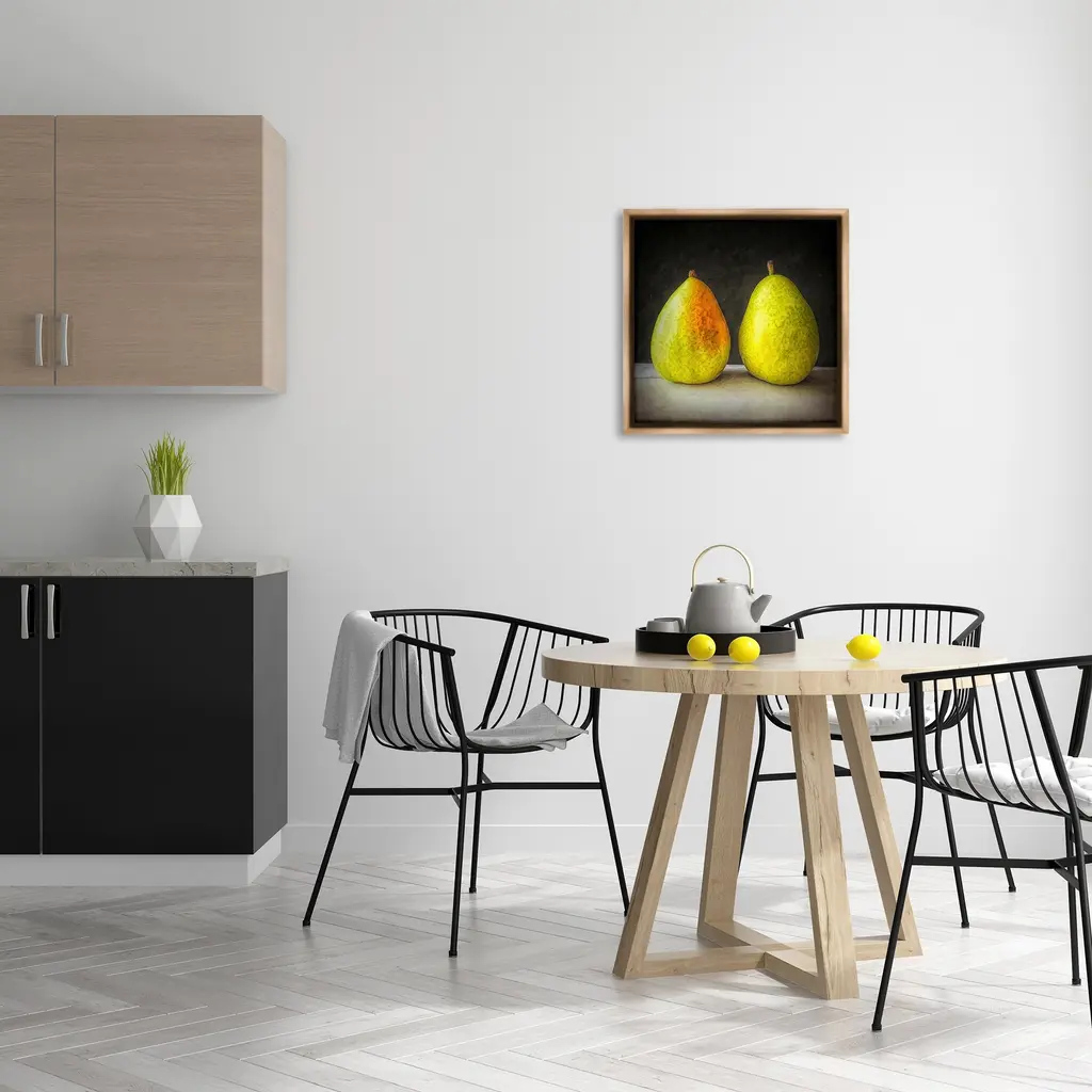 Elevate your home or office to the next level with Stupell Framed Floating Canvas Wall Art. Our premium hand-stretched canvas is mounted securely into a sturdy lightweight frame. The museum-style gap between the wrapped canvas and the box frame gives the illusion of floating artwork. Stupell Wall Art is made in the USA.Features: Dimensions: 18 x 1.7 x 18 Frame, 17 x 1.5 x 17 Canvas ArtFloating Frame Canvas Products are available in sizes 18"x18" and 25"x25". All Floating Frame Canvas Products have a 1.7" Depth.Wall Art is Ready to Hang with Hardware Free Hanging. No Installation required. For Easy Set Up Lean or Layer Artwork on Shelf or Against Wall. Artwork is Permently Fixed into the Frame.Our elevated 1.7" Thick Floating Frame is the perfect complement to our canvas style Wall Art. We use only the highest quality inks in house with industry leading printing solutions. Canvas is hand stretched over a durable wood foundation and then mounted securly into a Modern Box Frame. Made in the USA.Artwork Relates To: Food, Fruit, Plant, Produce, Pear, Still LifeDesign by GraffiTee Studios