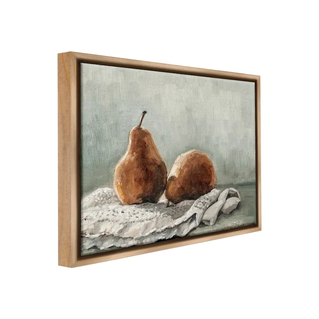 Elevate your home or office to the next level with Stupell Framed Floating Canvas Wall Art. Our premium hand-stretched canvas is mounted securely into a sturdy lightweight frame. The museum-style gap between the wrapped canvas and the box frame gives the illusion of floating artwork. Stupell Wall Art is made in the USA.Features: Dimensions: 21 x 1.7 x 17 Frame, 20 x 1.5 x 16 Canvas ArtFloating Frame Canvas Products are available in sizes 21"x17" and 31"x25". All Floating Frame Canvas Products have a 1.7" Depth.Wall Art is Ready to Hang with Hardware Free Hanging. No Installation required. For Easy Set Up Lean or Layer Artwork on Shelf or Against Wall. Artwork is Permently Fixed into the Frame.Our elevated 1.7" Thick Floating Frame is the perfect complement to our canvas style Wall Art. We use only the highest quality inks in house with industry leading printing solutions. Canvas is hand stretched over a durable wood foundation and then mounted securly into a Modern Box Frame. Made in the USA.Artwork Relates To: Food, Fruit, Plant, Produce, Still Life, Traditional, Country, PearDesign by Marian Parsons