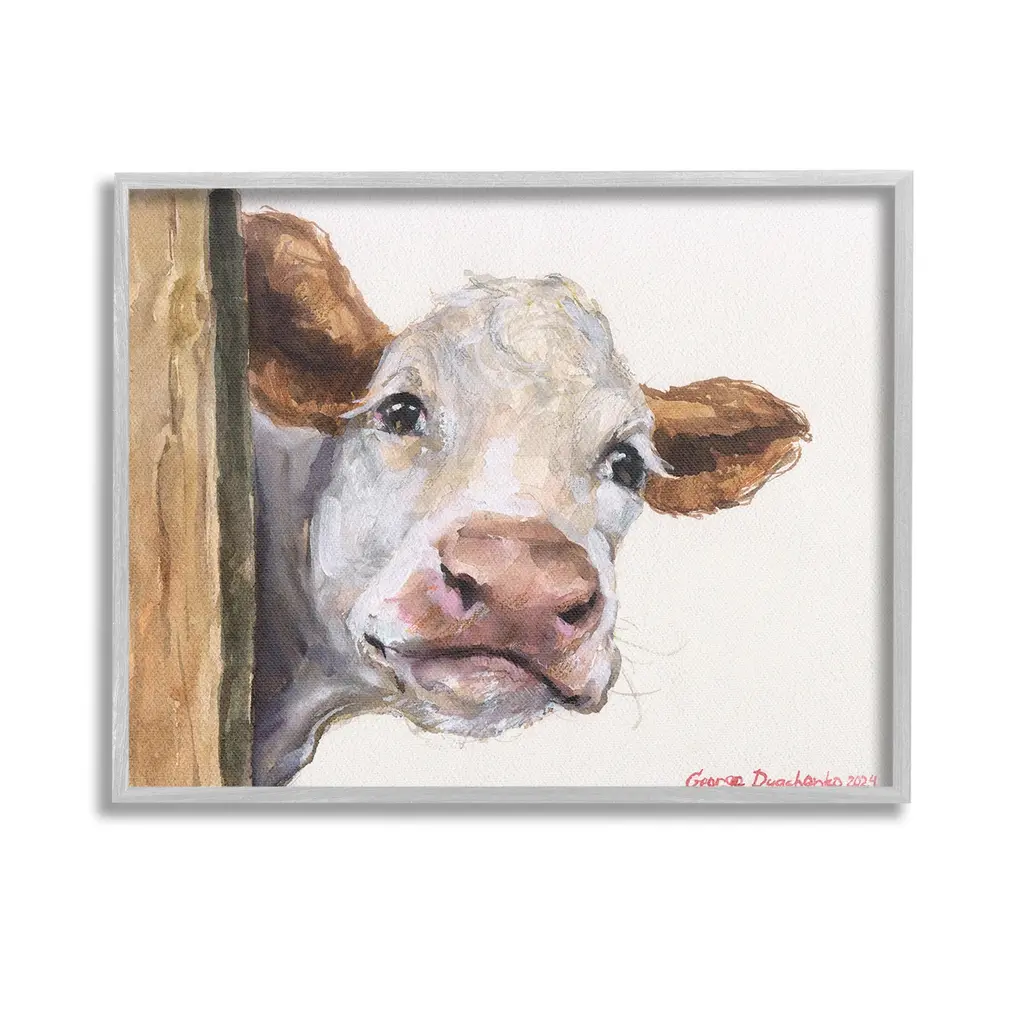 Elevate your home or office to the next level with Stupell Framed Floating Canvas Wall Art. Our premium hand-stretched canvas is mounted securely into a sturdy lightweight frame. The museum-style gap between the wrapped canvas and the box frame gives the illusion of floating artwork. Stupell Wall Art is made in the USA.Features: Dimensions: 21 x 1.7 x 17 Frame, 20 x 1.5 x 16 Canvas ArtFloating Frame Canvas Products are available in sizes 21"x17" and 31"x25". All Floating Frame Canvas Products have a 1.7" Depth.Wall Art is Ready to Hang with Hardware Free Hanging. No Installation required. For Easy Set Up Lean or Layer Artwork on Shelf or Against Wall. Artwork is Permently Fixed into the Frame.Our elevated 1.7" Thick Floating Frame is the perfect complement to our canvas style Wall Art. We use only the highest quality inks in house with industry leading printing solutions. Canvas is hand stretched over a durable wood foundation and then mounted securly into a Modern Box Frame. Made in the USA.Artwork Relates To: Animal, Cattle, Cow, Mammal, Farm, Country, PaintingDesign by GeorgeDyachenkoArt