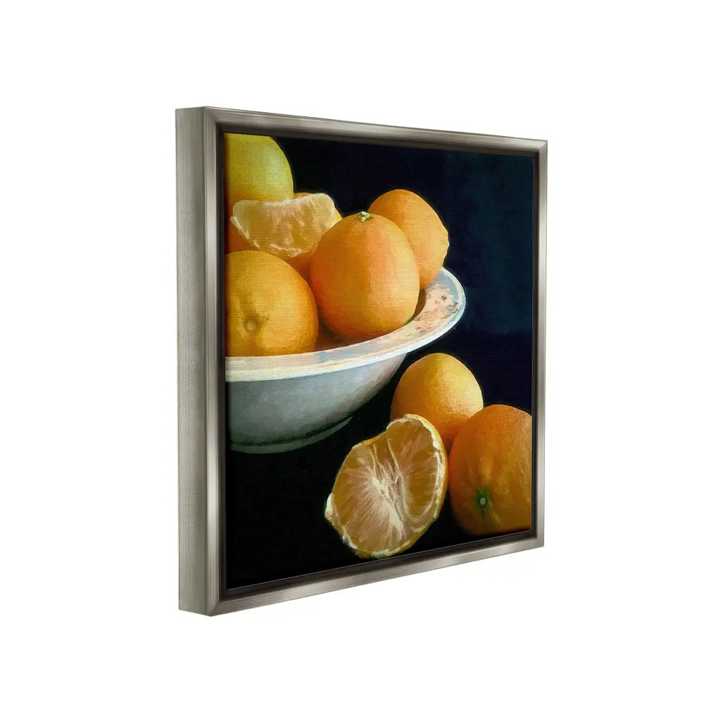 Elevate your home or office to the next level with Stupell Framed Floating Canvas Wall Art. Our premium hand-stretched canvas is mounted securely into a sturdy lightweight frame. The museum-style gap between the wrapped canvas and the box frame gives the illusion of floating artwork. Stupell Wall Art is made in the USA.Features: Dimensions: 18 x 1.7 x 18 Frame, 17 x 1.5 x 17 Canvas ArtFloating Frame Canvas Products are available in sizes 18"x18" and 25"x25". All Floating Frame Canvas Products have a 1.7" Depth.Wall Art is Ready to Hang with Hardware Free Hanging. No Installation required. For Easy Set Up Lean or Layer Artwork on Shelf or Against Wall. Artwork is Permently Fixed into the Frame.Our elevated 1.7" Thick Floating Frame is the perfect complement to our canvas style Wall Art. We use only the highest quality inks in house with industry leading printing solutions. Canvas is hand stretched over a durable wood foundation and then mounted securly into a Modern Box Frame. Made in the USA.Artwork Relates To: Food, Fruit, Plant, Produce, Orange, Still LifeDesign by GraffiTee Studios