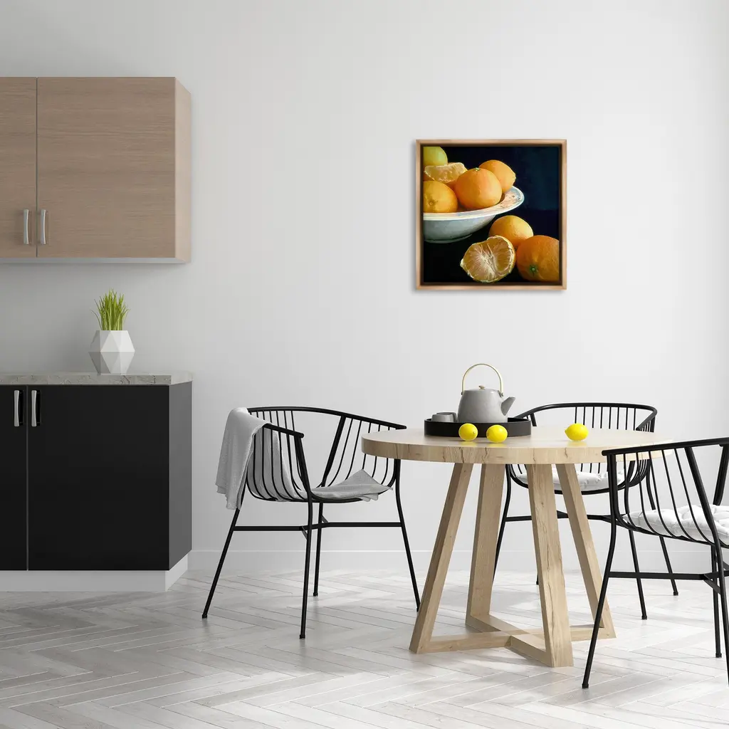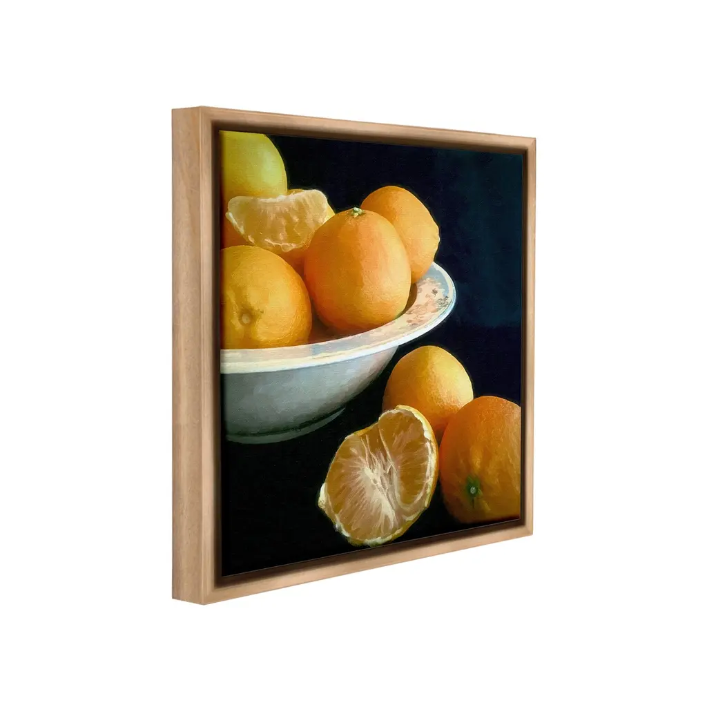 Elevate your home or office to the next level with Stupell Framed Floating Canvas Wall Art. Our premium hand-stretched canvas is mounted securely into a sturdy lightweight frame. The museum-style gap between the wrapped canvas and the box frame gives the illusion of floating artwork. Stupell Wall Art is made in the USA.Features: Dimensions: 18 x 1.7 x 18 Frame, 17 x 1.5 x 17 Canvas ArtFloating Frame Canvas Products are available in sizes 18"x18" and 25"x25". All Floating Frame Canvas Products have a 1.7" Depth.Wall Art is Ready to Hang with Hardware Free Hanging. No Installation required. For Easy Set Up Lean or Layer Artwork on Shelf or Against Wall. Artwork is Permently Fixed into the Frame.Our elevated 1.7" Thick Floating Frame is the perfect complement to our canvas style Wall Art. We use only the highest quality inks in house with industry leading printing solutions. Canvas is hand stretched over a durable wood foundation and then mounted securly into a Modern Box Frame. Made in the USA.Artwork Relates To: Food, Fruit, Plant, Produce, Orange, Still LifeDesign by GraffiTee Studios