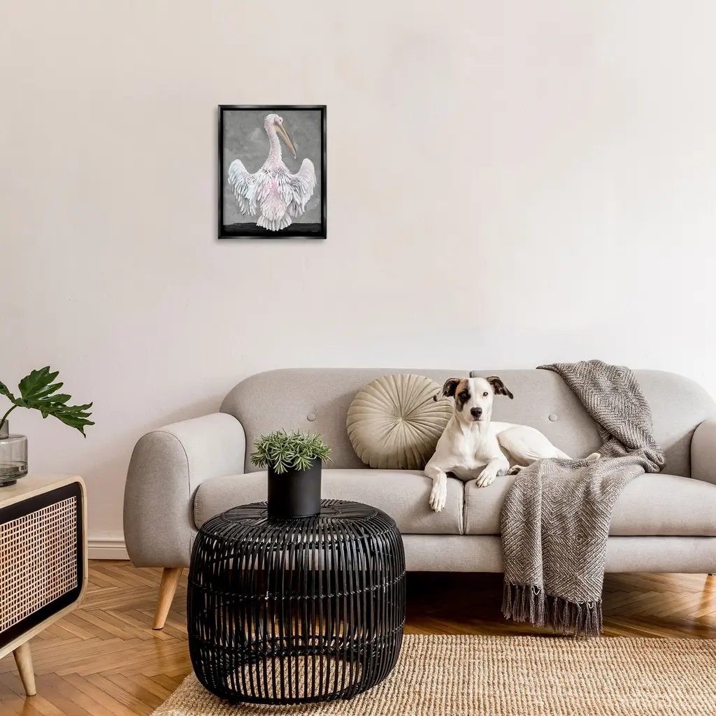 Elevate your home or office to the next level with Stupell Framed Floating Canvas Wall Art. Our premium hand-stretched canvas is mounted securely into a sturdy lightweight frame. The museum-style gap between the wrapped canvas and the box frame gives the illusion of floating artwork. Stupell Wall Art is made in the USA.Features: Dimensions: 17 x 1.7 x 21 Frame, 16 x 1.5 x 20 Canvas ArtFloating Frame Canvas Products are available in sizes 17"x21" and 25"x31". All Floating Frame Canvas Products have a 1.7" Depth.Wall Art is Ready to Hang with Hardware Free Hanging. No Installation required. For Easy Set Up Lean or Layer Artwork on Shelf or Against Wall. Artwork is Permently Fixed into the Frame.Our elevated 1.7" Thick Floating Frame is the perfect complement to our canvas style Wall Art. We use only the highest quality inks in house with industry leading printing solutions. Canvas is hand stretched over a durable wood foundation and then mounted securly into a Modern Box Frame. Made in the USA.Artwork Relates To: Animal, Bird, Waterfowl, Pelican, Nautical, BeachDesign by Steller Design Studio
