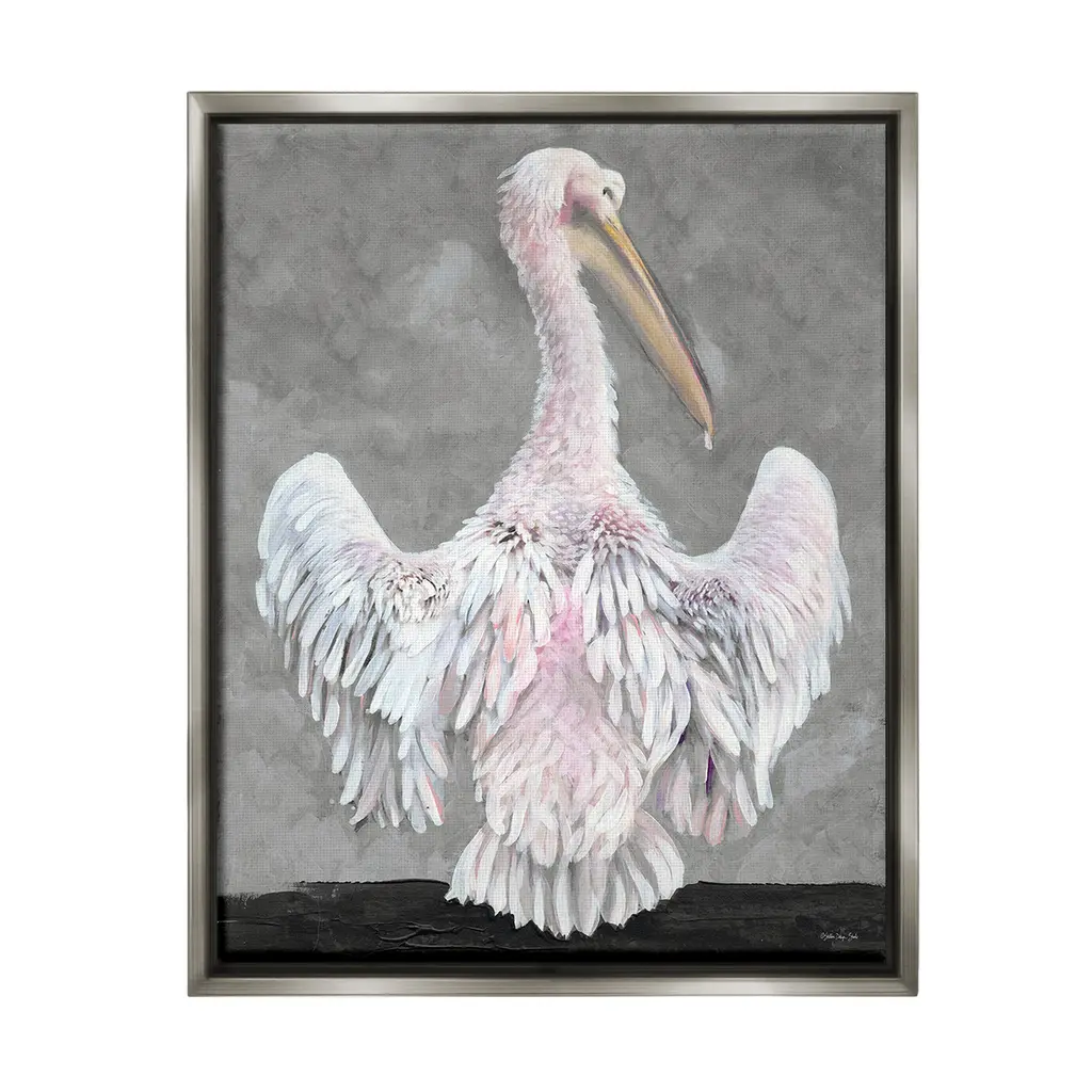 Elevate your home or office to the next level with Stupell Framed Floating Canvas Wall Art. Our premium hand-stretched canvas is mounted securely into a sturdy lightweight frame. The museum-style gap between the wrapped canvas and the box frame gives the illusion of floating artwork. Stupell Wall Art is made in the USA.Features: Dimensions: 17 x 1.7 x 21 Frame, 16 x 1.5 x 20 Canvas ArtFloating Frame Canvas Products are available in sizes 17"x21" and 25"x31". All Floating Frame Canvas Products have a 1.7" Depth.Wall Art is Ready to Hang with Hardware Free Hanging. No Installation required. For Easy Set Up Lean or Layer Artwork on Shelf or Against Wall. Artwork is Permently Fixed into the Frame.Our elevated 1.7" Thick Floating Frame is the perfect complement to our canvas style Wall Art. We use only the highest quality inks in house with industry leading printing solutions. Canvas is hand stretched over a durable wood foundation and then mounted securly into a Modern Box Frame. Made in the USA.Artwork Relates To: Animal, Bird, Waterfowl, Pelican, Nautical, BeachDesign by Steller Design Studio