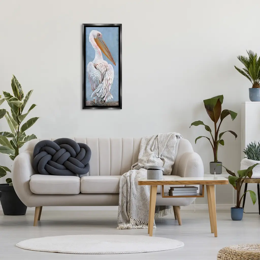 Elevate your home or office to the next level with Stupell Framed Floating Canvas Wall Art. Our premium hand-stretched canvas is mounted securely into a sturdy lightweight frame. The museum-style gap between the wrapped canvas and the box frame gives the illusion of floating artwork. Stupell Wall Art is made in the USA.Features: Dimensions: 11 x 1.7 x 25 Frame, 10 x 1.5 x 24 Canvas ArtFloating Frame Canvas Products are available in sizes 11"x25" and 14"x31". All Floating Frame Canvas Products have a 1.7" Depth.Wall Art is Ready to Hang with Hardware Free Hanging. No Installation required. For Easy Set Up Lean or Layer Artwork on Shelf or Against Wall. Artwork is Permently Fixed into the Frame.Our elevated 1.7" Thick Floating Frame is the perfect complement to our canvas style Wall Art. We use only the highest quality inks in house with industry leading printing solutions. Canvas is hand stretched over a durable wood foundation and then mounted securly into a Modern Box Frame. Made in the USA.Artwork Relates To: Animal, Bird, Waterfowl, Pelican, Nautical, BeachDesign by Steller Design Studio