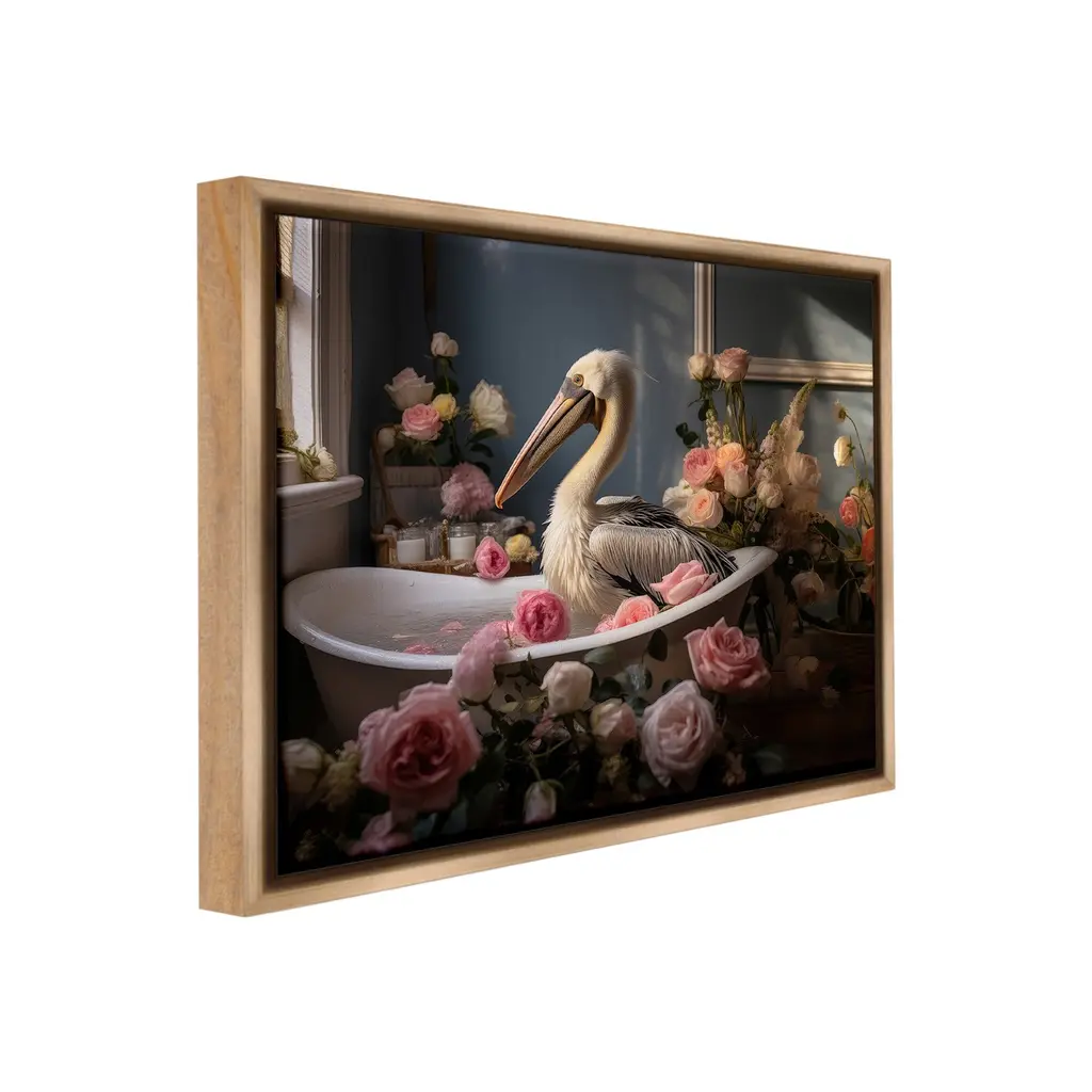 Elevate your home or office to the next level with Stupell Framed Floating Canvas Wall Art. Our premium hand-stretched canvas is mounted securely into a sturdy lightweight frame. The museum-style gap between the wrapped canvas and the box frame gives the illusion of floating artwork. Stupell Wall Art is made in the USA.Features: Dimensions: 21 x 1.7 x 17 Frame, 20 x 1.5 x 16 Canvas ArtFloating Frame Canvas Products are available in sizes 21"x17" and 31"x25". All Floating Frame Canvas Products have a 1.7" Depth.Wall Art is Ready to Hang with Hardware Free Hanging. No Installation required. For Easy Set Up Lean or Layer Artwork on Shelf or Against Wall. Artwork is Permently Fixed into the Frame.Our elevated 1.7" Thick Floating Frame is the perfect complement to our canvas style Wall Art. We use only the highest quality inks in house with industry leading printing solutions. Canvas is hand stretched over a durable wood foundation and then mounted securly into a Modern Box Frame. Made in the USA.Artwork Relates To: Bathroom, Animal, Tub, Flower, Blossom, Bird, Pelican, Nautical, RosesDesign by Lazar Studio