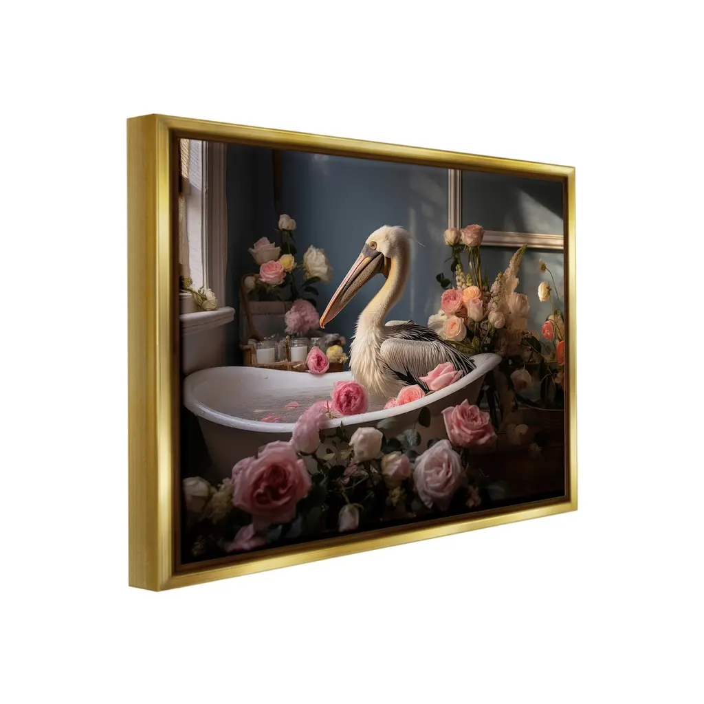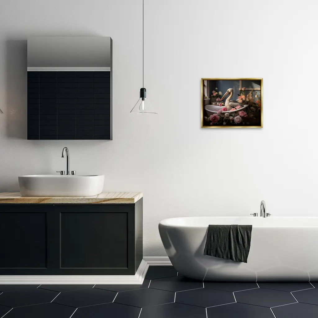 Elevate your home or office to the next level with Stupell Framed Floating Canvas Wall Art. Our premium hand-stretched canvas is mounted securely into a sturdy lightweight frame. The museum-style gap between the wrapped canvas and the box frame gives the illusion of floating artwork. Stupell Wall Art is made in the USA.Features: Dimensions: 21 x 1.7 x 17 Frame, 20 x 1.5 x 16 Canvas ArtFloating Frame Canvas Products are available in sizes 21"x17" and 31"x25". All Floating Frame Canvas Products have a 1.7" Depth.Wall Art is Ready to Hang with Hardware Free Hanging. No Installation required. For Easy Set Up Lean or Layer Artwork on Shelf or Against Wall. Artwork is Permently Fixed into the Frame.Our elevated 1.7" Thick Floating Frame is the perfect complement to our canvas style Wall Art. We use only the highest quality inks in house with industry leading printing solutions. Canvas is hand stretched over a durable wood foundation and then mounted securly into a Modern Box Frame. Made in the USA.Artwork Relates To: Bathroom, Animal, Tub, Flower, Blossom, Bird, Pelican, Nautical, RosesDesign by Lazar Studio
