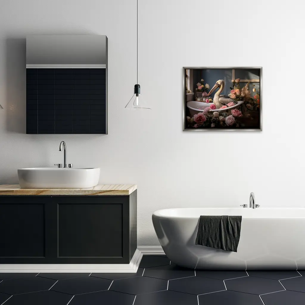 Elevate your home or office to the next level with Stupell Framed Floating Canvas Wall Art. Our premium hand-stretched canvas is mounted securely into a sturdy lightweight frame. The museum-style gap between the wrapped canvas and the box frame gives the illusion of floating artwork. Stupell Wall Art is made in the USA.Features: Dimensions: 21 x 1.7 x 17 Frame, 20 x 1.5 x 16 Canvas ArtFloating Frame Canvas Products are available in sizes 21"x17" and 31"x25". All Floating Frame Canvas Products have a 1.7" Depth.Wall Art is Ready to Hang with Hardware Free Hanging. No Installation required. For Easy Set Up Lean or Layer Artwork on Shelf or Against Wall. Artwork is Permently Fixed into the Frame.Our elevated 1.7" Thick Floating Frame is the perfect complement to our canvas style Wall Art. We use only the highest quality inks in house with industry leading printing solutions. Canvas is hand stretched over a durable wood foundation and then mounted securly into a Modern Box Frame. Made in the USA.Artwork Relates To: Bathroom, Animal, Tub, Flower, Blossom, Bird, Pelican, Nautical, RosesDesign by Lazar Studio