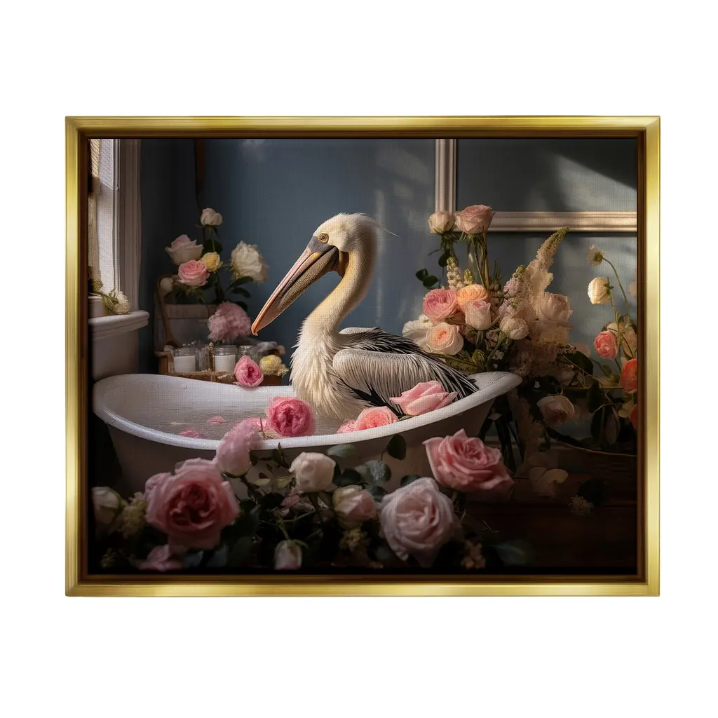 Stupell Pelican In Rose Filled Tub Framed Giclee Art Design By Lazar Studio - 30 X 24 - White