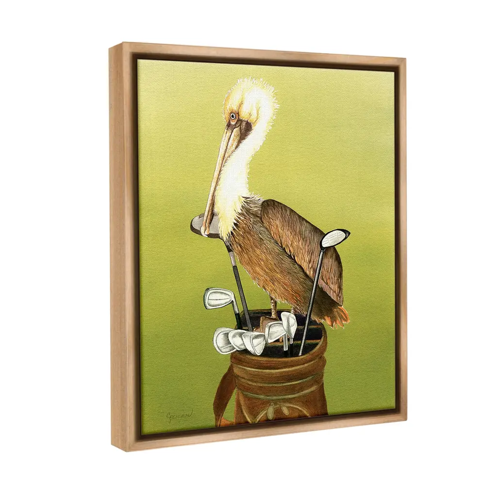Elevate your home or office to the next level with Stupell Framed Floating Canvas Wall Art. Our premium hand-stretched canvas is mounted securely into a sturdy lightweight frame. The museum-style gap between the wrapped canvas and the box frame gives the illusion of floating artwork. Stupell Wall Art is made in the USA.Features: Dimensions: 17 x 1.7 x 21 Frame, 16 x 1.5 x 20 Canvas ArtFloating Frame Canvas Products are available in sizes 17"x21" and 25"x31". All Floating Frame Canvas Products have a 1.7" Depth.Wall Art is Ready to Hang with Hardware Free Hanging. No Installation required. For Easy Set Up Lean or Layer Artwork on Shelf or Against Wall. Artwork is Permently Fixed into the Frame.Our elevated 1.7" Thick Floating Frame is the perfect complement to our canvas style Wall Art. We use only the highest quality inks in house with industry leading printing solutions. Canvas is hand stretched over a durable wood foundation and then mounted securly into a Modern Box Frame. Made in the USA.Artwork Relates To: Animal, Bird, Waterfowl, Pelican, Golf, Golf Club, SportDesign by Christine Reichow