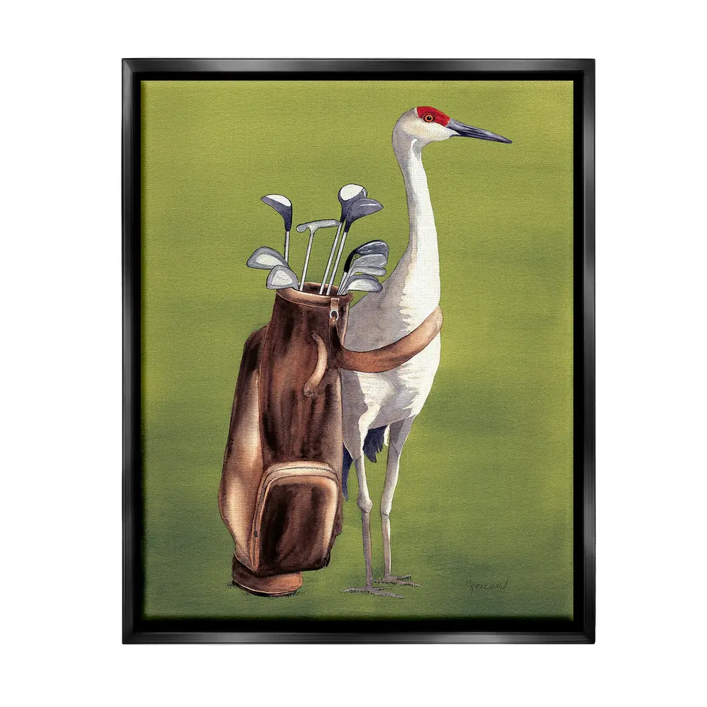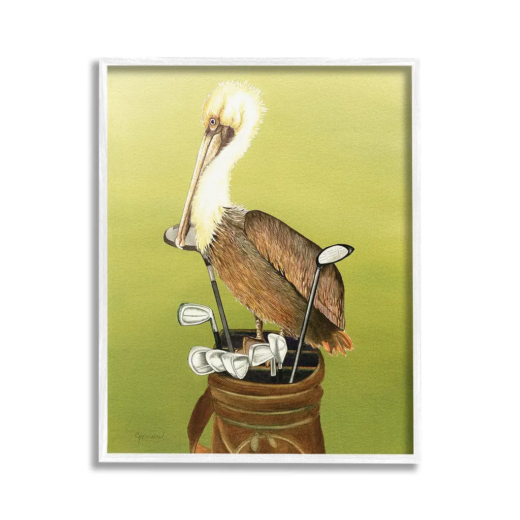 Add dimension to any room with our textured Framed Giclee Artwork. Our framed artwork is securely mounted into a 1.5-inch thick wood grain frame and ready to hang. Frames are available in three alluring styles: black, gray farmhouse and white. In addition, you should check out our oversized options if you want a statement piece. Stupell Wall Art is made in the USA.Features: Dimensions: 11 x 1.5 x 14 FramedFramed Giclee Products are available in the sizes 11"x14", 16"x20" or 24"x30". All Framed Giclee Products have a 1.5" Depth. Wall Art is Ready to Hang with Hardware Free Hanging. No installation required. For Easy Set Up Lean or Layer Artwork on Shelf or Against Wall.Our giclée prints are carefully mounted on a durable MDF backing, and then perfectly finished in a 1.5 inch thick woodgrain frame. Mounted frame colors include black, gray farmhouse and white. Made In USA.Artwork Relates To: Animal, Bird, Waterfowl, Pelican, Golf, Golf Club, SportDesign by Christine Reichow