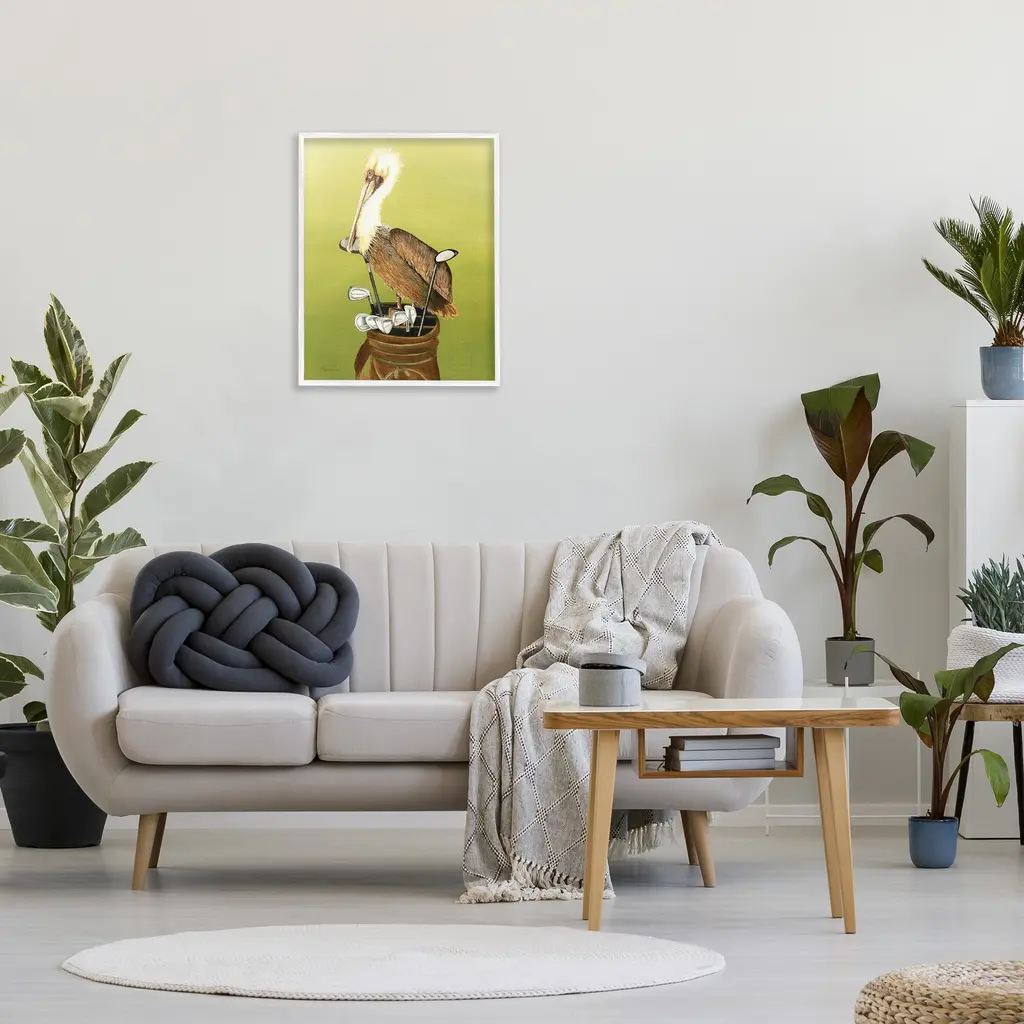 Add dimension to any room with our textured Framed Giclee Artwork. Our framed artwork is securely mounted into a 1.5-inch thick wood grain frame and ready to hang. Frames are available in three alluring styles: black, gray farmhouse and white. In addition, you should check out our oversized options if you want a statement piece. Stupell Wall Art is made in the USA.Features: Dimensions: 11 x 1.5 x 14 FramedFramed Giclee Products are available in the sizes 11"x14", 16"x20" or 24"x30". All Framed Giclee Products have a 1.5" Depth. Wall Art is Ready to Hang with Hardware Free Hanging. No installation required. For Easy Set Up Lean or Layer Artwork on Shelf or Against Wall.Our giclée prints are carefully mounted on a durable MDF backing, and then perfectly finished in a 1.5 inch thick woodgrain frame. Mounted frame colors include black, gray farmhouse and white. Made In USA.Artwork Relates To: Animal, Bird, Waterfowl, Pelican, Golf, Golf Club, SportDesign by Christine Reichow