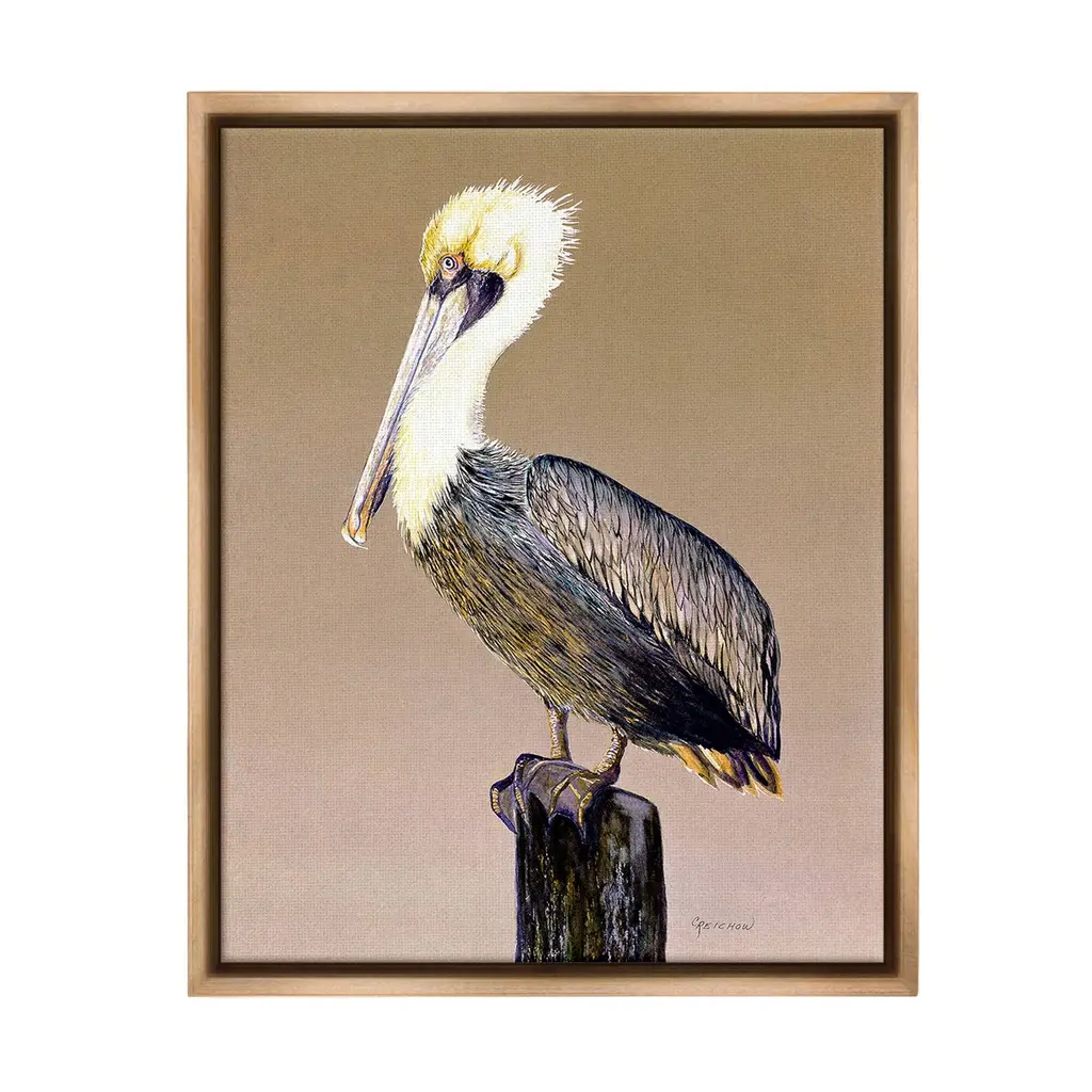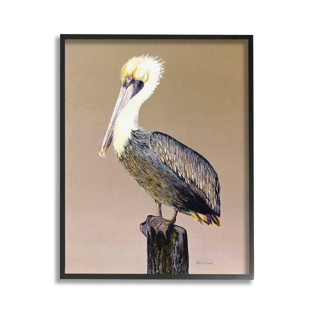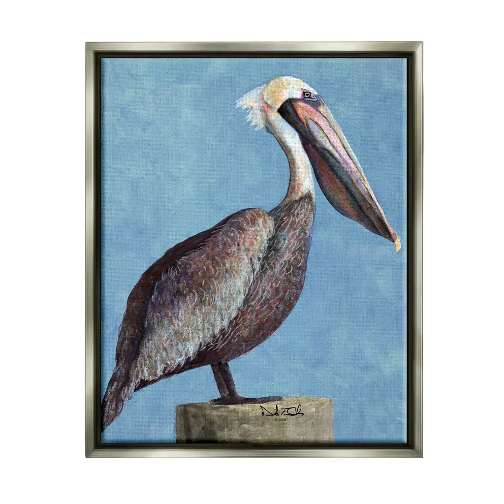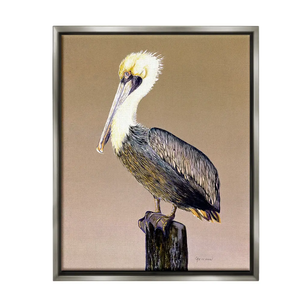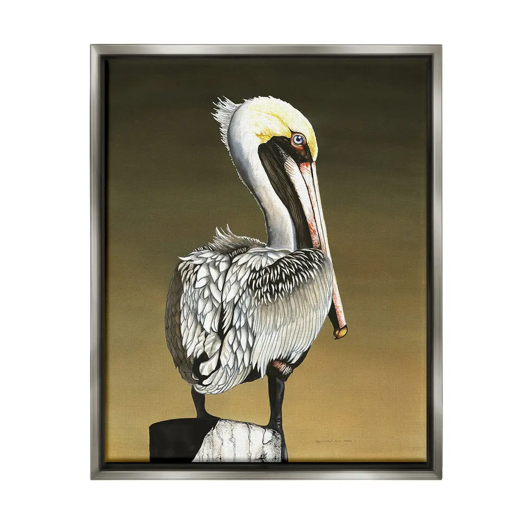 Elevate your home or office to the next level with Stupell Framed Floating Canvas Wall Art. Our premium hand-stretched canvas is mounted securely into a sturdy lightweight frame. The museum-style gap between the wrapped canvas and the box frame gives the illusion of floating artwork. Stupell Wall Art is made in the USA.Features: Dimensions: 17 x 1.7 x 21 Frame, 16 x 1.5 x 20 Canvas ArtFloating Frame Canvas Products are available in sizes 17"x21" and 25"x31". All Floating Frame Canvas Products have a 1.7" Depth.Wall Art is Ready to Hang with Hardware Free Hanging. No Installation required. For Easy Set Up Lean or Layer Artwork on Shelf or Against Wall. Artwork is Permently Fixed into the Frame.Our elevated 1.7" Thick Floating Frame is the perfect complement to our canvas style Wall Art. We use only the highest quality inks in house with industry leading printing solutions. Canvas is hand stretched over a durable wood foundation and then mounted securly into a Modern Box Frame. Made in the USA.Artwork Relates To: Animal, Bird, Waterfowl, Pelican, Beak, Traditional, NatureDesign by Christine Reichow