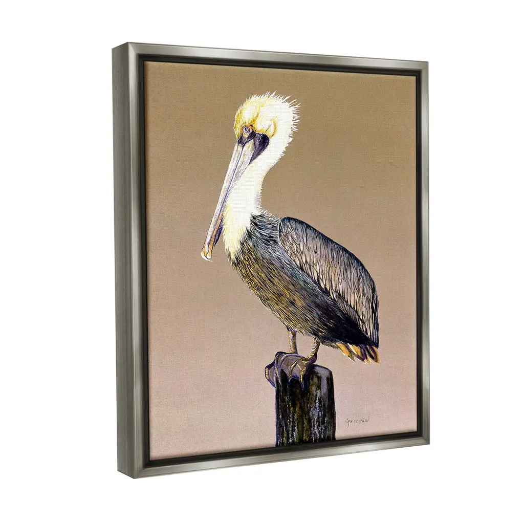 Elevate your home or office to the next level with Stupell Framed Floating Canvas Wall Art. Our premium hand-stretched canvas is mounted securely into a sturdy lightweight frame. The museum-style gap between the wrapped canvas and the box frame gives the illusion of floating artwork. Stupell Wall Art is made in the USA.Features: Dimensions: 17 x 1.7 x 21 Frame, 16 x 1.5 x 20 Canvas ArtFloating Frame Canvas Products are available in sizes 17"x21" and 25"x31". All Floating Frame Canvas Products have a 1.7" Depth.Wall Art is Ready to Hang with Hardware Free Hanging. No Installation required. For Easy Set Up Lean or Layer Artwork on Shelf or Against Wall. Artwork is Permently Fixed into the Frame.Our elevated 1.7" Thick Floating Frame is the perfect complement to our canvas style Wall Art. We use only the highest quality inks in house with industry leading printing solutions. Canvas is hand stretched over a durable wood foundation and then mounted securly into a Modern Box Frame. Made in the USA.Artwork Relates To: Animal, Bird, Waterfowl, Pelican, Beak, Traditional, NatureDesign by Christine Reichow