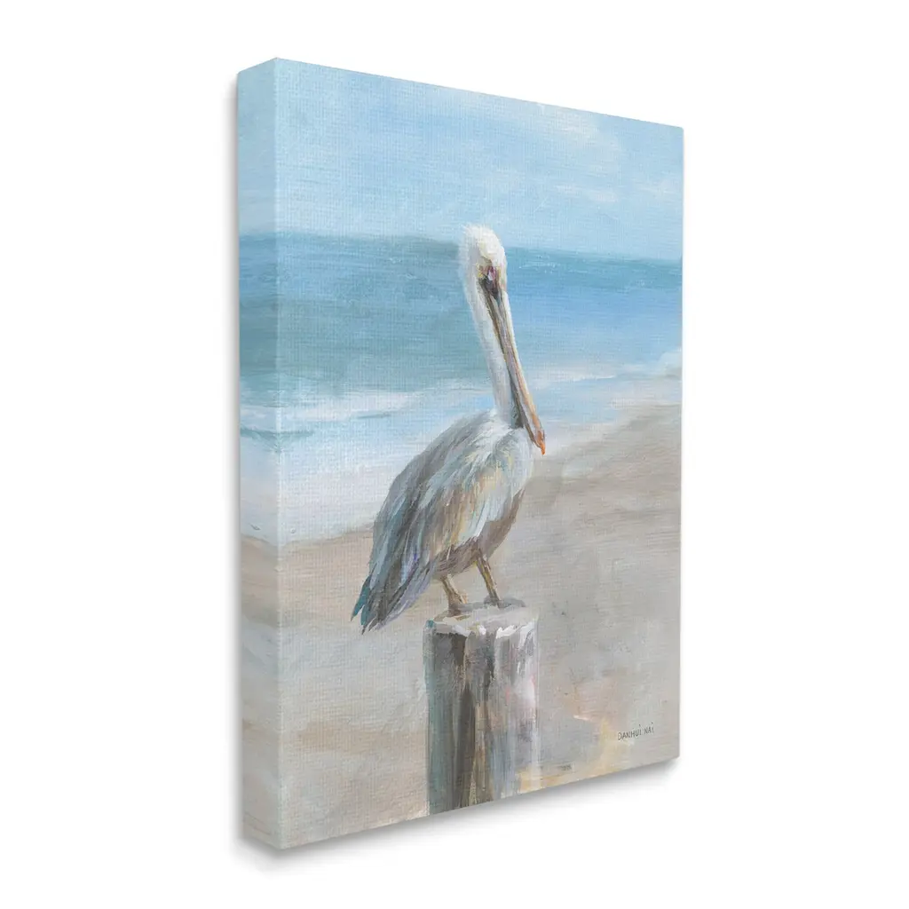 We create our stretched canvas to the highest standards. Using only the highest quality inks and canvas on Mimaki printers, we hand-cut and stretch each piece over a 1.5-inch thick wooden frame for hanging. As a result, the art comes ready to hang on the sturdy ledge with no installation required. Stupell Wall Art is made in the USA.Features: Dimensions: 16 x 1.5 x 20 InchesStretched Canvas Sizes Include Standard: 16 x 1.5 x 20 Large: 20 x 1.5 x 30 X-Large: 30 x 1.5 x 40 Oversized: 36 x 1.5 x 48Wall Art is Ready to Hang with Hardware Free Hanging. No installation required. For Easy Set Up Lean or Layer Artwork on Shelf or Against Wall.Our stretched canvas is created with the highest standards. We use only the highest quality inks and canvas on our in house Mimaki printers, and then hand cut and stretch each piece over a 1.5 inch thick wooden frame for hanging. Made In USA.Artwork Relates To: Animal, Bird, Waterfowl, Beak, Plant, Tree, Pelican, Beach, Landscape, Shore, CoastDesign by Danhui Nai