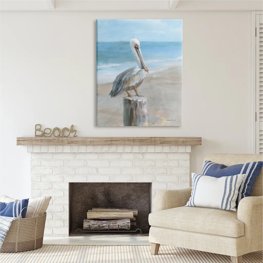 We create our stretched canvas to the highest standards. Using only the highest quality inks and canvas on Mimaki printers, we hand-cut and stretch each piece over a 1.5-inch thick wooden frame for hanging. As a result, the art comes ready to hang on the sturdy ledge with no installation required. Stupell Wall Art is made in the USA.Features: Dimensions: 16 x 1.5 x 20 InchesStretched Canvas Sizes Include Standard: 16 x 1.5 x 20 Large: 20 x 1.5 x 30 X-Large: 30 x 1.5 x 40 Oversized: 36 x 1.5 x 48Wall Art is Ready to Hang with Hardware Free Hanging. No installation required. For Easy Set Up Lean or Layer Artwork on Shelf or Against Wall.Our stretched canvas is created with the highest standards. We use only the highest quality inks and canvas on our in house Mimaki printers, and then hand cut and stretch each piece over a 1.5 inch thick wooden frame for hanging. Made In USA.Artwork Relates To: Animal, Bird, Waterfowl, Beak, Plant, Tree, Pelican, Beach, Landscape, Shore, CoastDesign by Danhui Nai