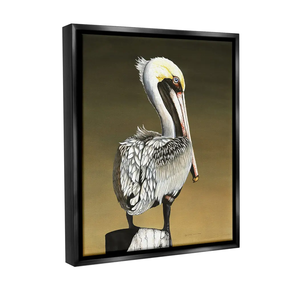 Elevate your home or office to the next level with Stupell Framed Floating Canvas Wall Art. Our premium hand-stretched canvas is mounted securely into a sturdy lightweight frame. The museum-style gap between the wrapped canvas and the box frame gives the illusion of floating artwork. Stupell Wall Art is made in the USA.Features: Dimensions: 17 x 1.7 x 21 Frame, 16 x 1.5 x 20 Canvas ArtFloating Frame Canvas Products are available in sizes 17"x21" and 25"x31". All Floating Frame Canvas Products have a 1.7" Depth.Wall Art is Ready to Hang with Hardware Free Hanging. No Installation required. For Easy Set Up Lean or Layer Artwork on Shelf or Against Wall. Artwork is Permently Fixed into the Frame.Our elevated 1.7" Thick Floating Frame is the perfect complement to our canvas style Wall Art. We use only the highest quality inks in house with industry leading printing solutions. Canvas is hand stretched over a durable wood foundation and then mounted securly into a Modern Box Frame. Made in the USA.Artwork Relates To: Animal, Bird, Waterfowl, Pelican, Beak, Traditional, NatureDesign by Christine Reichow