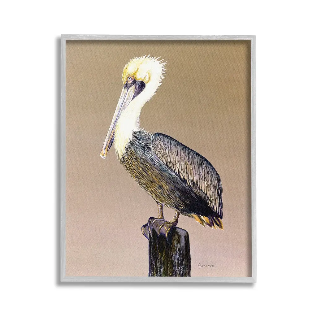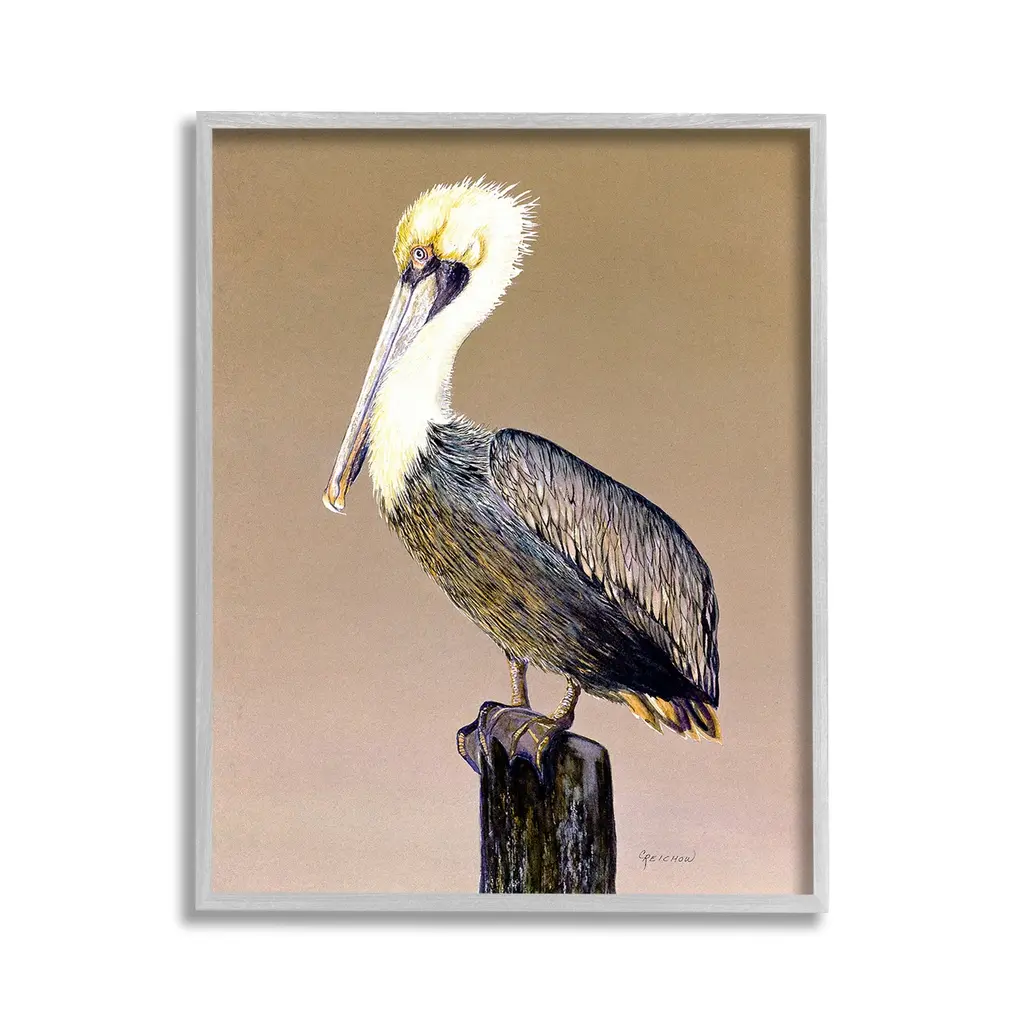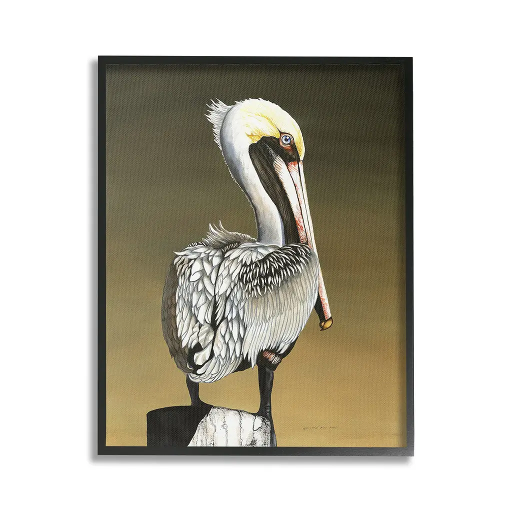 Add dimension to any room with our textured Framed Giclee Artwork. Our framed artwork is securely mounted into a 1.5-inch thick wood grain frame and ready to hang. Frames are available in three alluring styles: black, gray farmhouse and white. In addition, you should check out our oversized options if you want a statement piece. Stupell Wall Art is made in the USA.Features: Dimensions: 11 x 1.5 x 14 FramedFramed Giclee Products are available in the sizes 11"x14", 16"x20" or 24"x30". All Framed Giclee Products have a 1.5" Depth. Wall Art is Ready to Hang with Hardware Free Hanging. No installation required. For Easy Set Up Lean or Layer Artwork on Shelf or Against Wall.Our giclée prints are carefully mounted on a durable MDF backing, and then perfectly finished in a 1.5 inch thick woodgrain frame. Mounted frame colors include black, gray farmhouse and white. Made In USA.Artwork Relates To: Animal, Bird, Waterfowl, Pelican, Beak, Traditional, NatureDesign by Christine Reichow