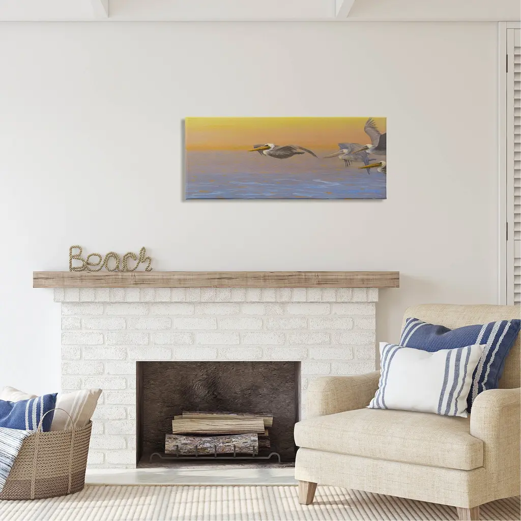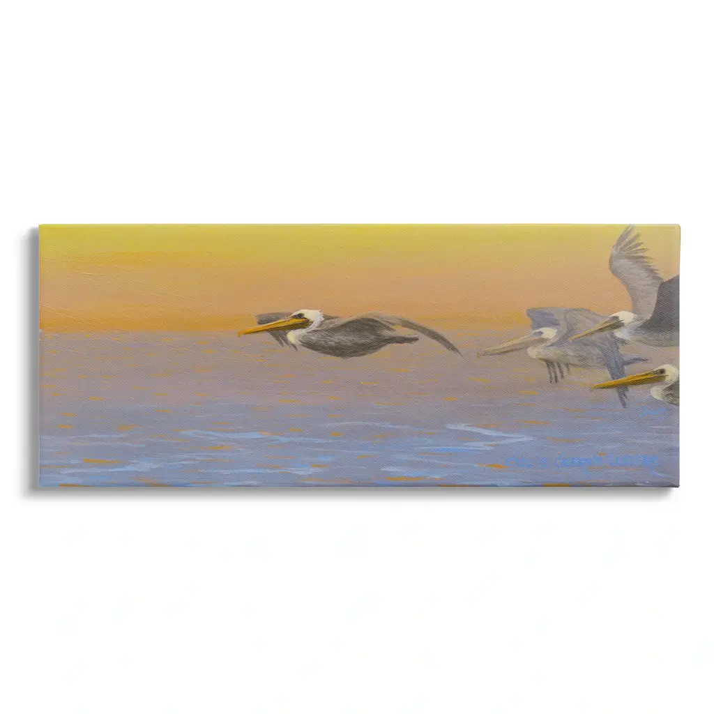 We create our stretched canvas to the highest standards. Using only the highest quality inks and canvas on Mimaki printers, we hand-cut and stretch each piece over a 1.5-inch thick wooden frame for hanging. As a result, the art comes ready to hang on the sturdy ledge with no installation required. Stupell Wall Art is made in the USA.Features: Dimensions: 24 x 1.5 x 10 InchesStretched Canvas Sizes Include Standard: 24 x 1.5 x 10 Large: 30 x 1.5 x 13 X-Large: 40 x 1.5 x 17 Oversized: 48 x 1.5 x 20Wall Art is Ready to Hang - No Installation or Hardware Needed. For Easy Set Up Lean or Layer Artwork on Shelf or Against Wall.Our stretched canvas is created with the highest standards. We use only the highest quality inks and canvas on our in house Mimaki printers, and then hand cut and stretch each piece over a 1.5 inch thick wooden frame for hanging. Made In USA.Artwork Relates To: Animal, Bird, Flying, Beak, Waterfowl, Pelican, Flock, CormorantDesign by Suzie Seerey-Lester