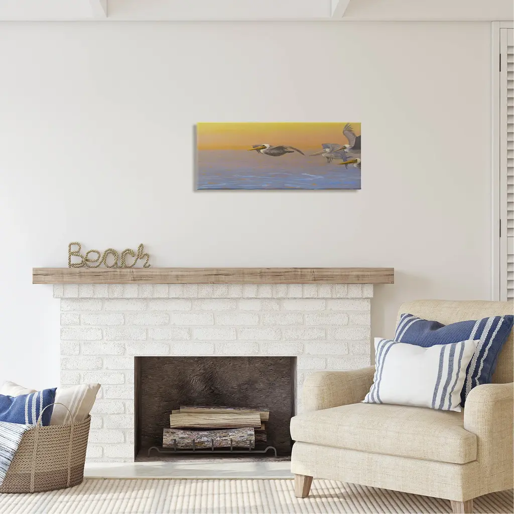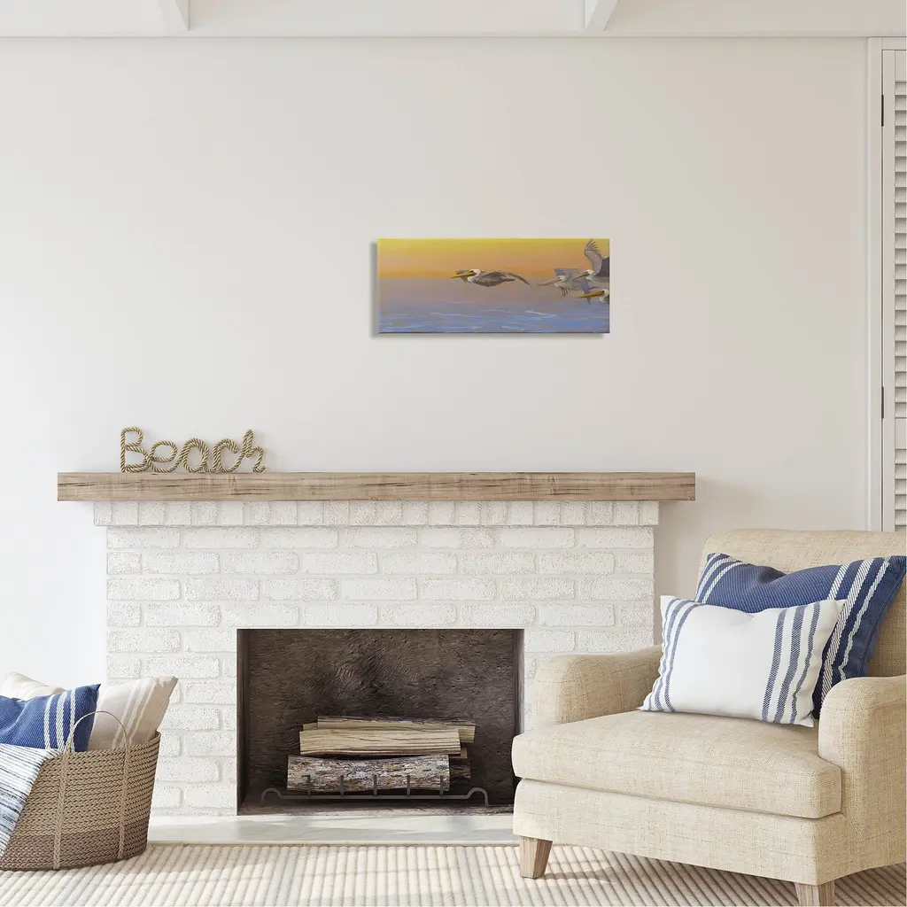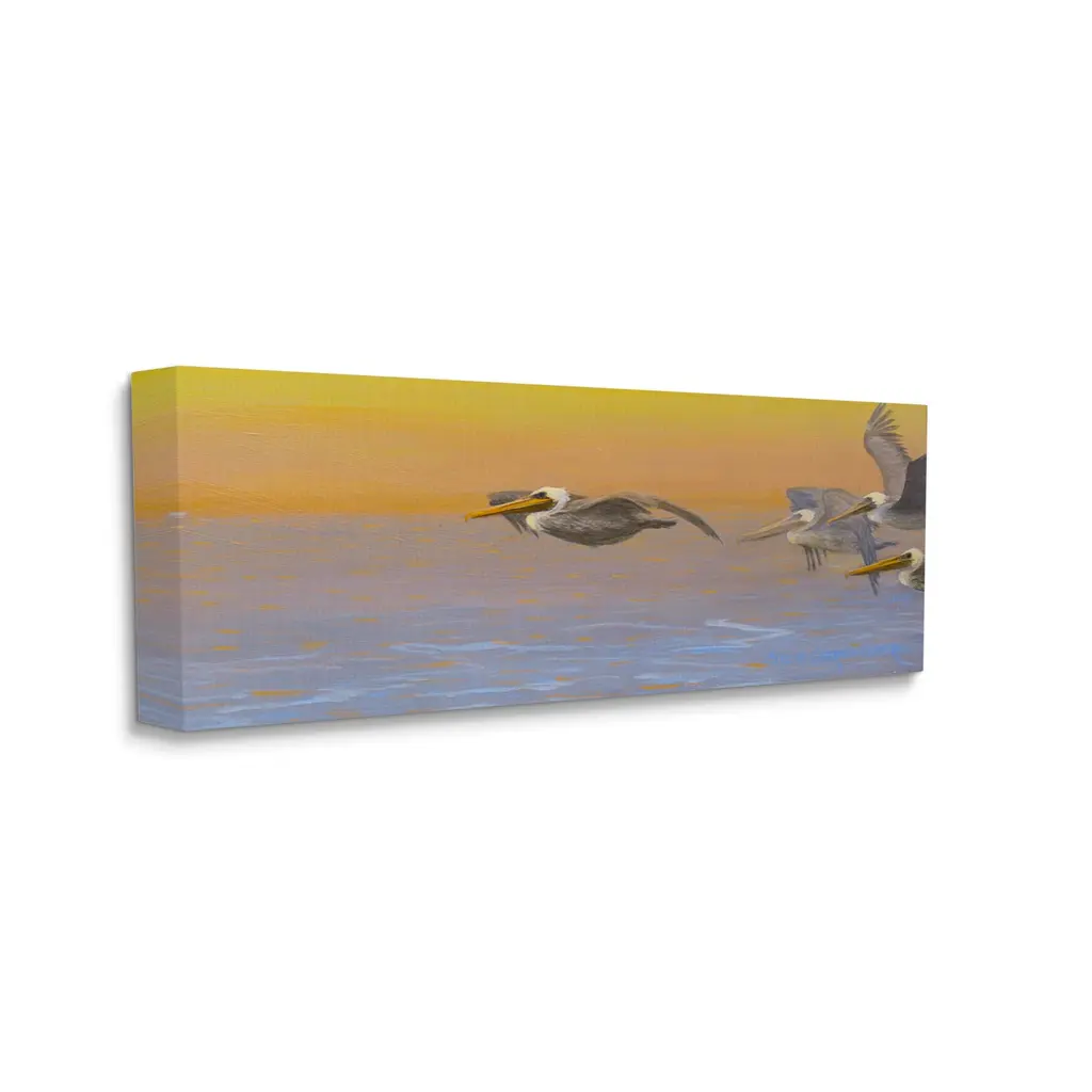 Stupell Pelicans Flying Ocean Sunrise Canvas Wall Art By Suzie Seerey-Lester - 24 X 10