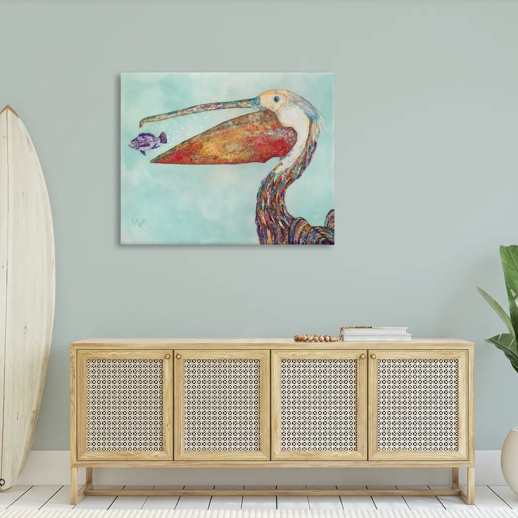 Stupell Pelican's Lost Supper Fish And Patterned Feathers Canvas Wall Art - Multi-Color - 36 X 48
