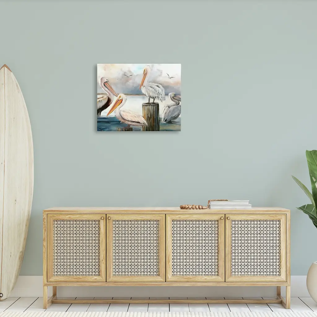 We create our stretched canvas to the highest standards. Using only the highest quality inks and canvas on Mimaki printers, we hand-cut and stretch each piece over a 1.5-inch thick wooden frame for hanging. As a result, the art comes ready to hang on the sturdy ledge with no installation required. Stupell Wall Art is made in the USA.Features: Dimensions: 20 x 1.5 x 16 InchesStretched Canvas Sizes Include Standard: 20 x 1.5 x 16 Large: 30 x 1.5 x 20 X-Large: 40 x 1.5 x 30 Oversized: 48 x 1.5 x 36Wall Art is Ready to Hang - No Installation or Hardware Needed. For Easy Set Up Lean or Layer Artwork on Shelf or Against Wall.Our stretched canvas is created with the highest standards. We use only the highest quality inks and canvas on our in house Mimaki printers, and then hand cut and stretch each piece over a 1.5 inch thick wooden frame for hanging. Made In USA.Artwork Relates To: Animal, Bird, Waterfowl, Pelican, Beak, Nautical, Beach, CoastalDesign by Ziwei Li