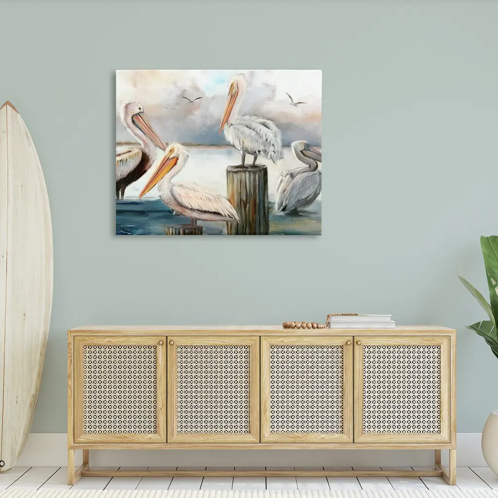 Stupell Pelicans Perched Cloudy Horizon Canvas Wall Art By Ziwei Li - 48 X 36