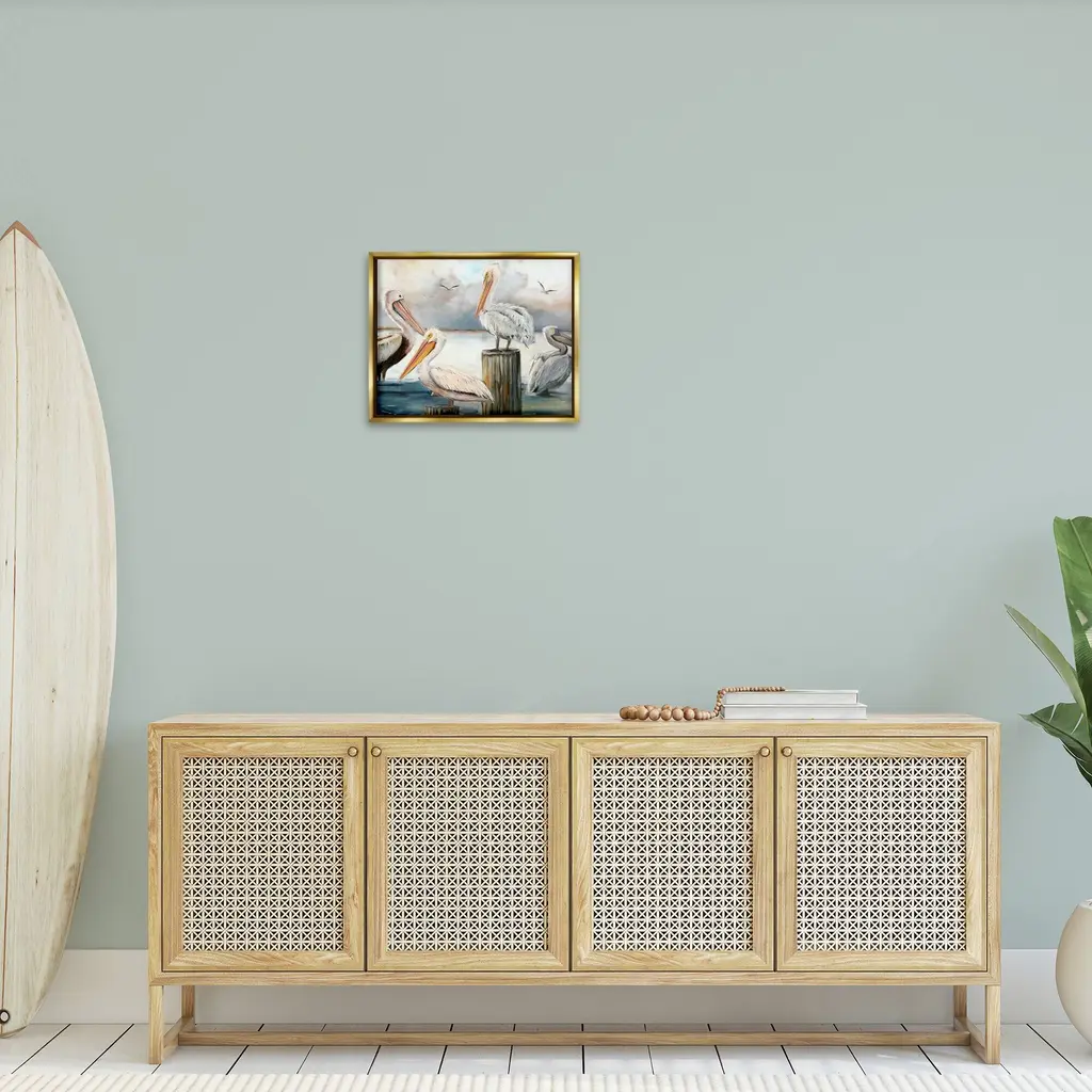 Elevate your home or office to the next level with Stupell Framed Floating Canvas Wall Art. Our premium hand-stretched canvas is mounted securely into a sturdy lightweight frame. The museum-style gap between the wrapped canvas and the box frame gives the illusion of floating artwork. Stupell Wall Art is made in the USA.Features: Dimensions: 21 x 1.7 x 17 Frame, 20 x 1.5 x 16 Canvas ArtFloating Frame Sizes Include Standard: 21 x 1.7 x 17 Oversized: 31 x 1.7 x 25Wall Art is Ready to Hang - No Installation or Hardware Needed. For Easy Set Up Lean or Layer Artwork on Shelf or Against Wall.Our elevated 1.7" Thick Floating Frame is the perfect complement to our canvas style Wall Art. We use only the highest quality inks in house with industry leading printing solutions. Canvas is hand stretched over a durable wood foundation and then mounted securly into a Modern Box Frame. Made in the USA.Artwork Relates To: Animal, Bird, Waterfowl, Pelican, Beak, Nautical, Beach, CoastalDesign by Ziwei Li