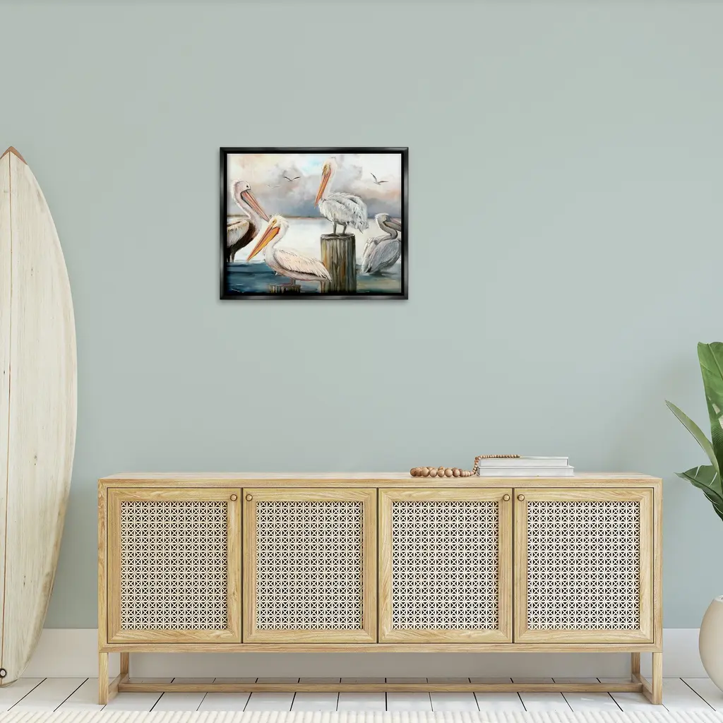 Stupell Pelicans Perched Cloudy Horizon Framed Floater Canvas Wall Art By Ziwei Li - 31 X 25 - Black