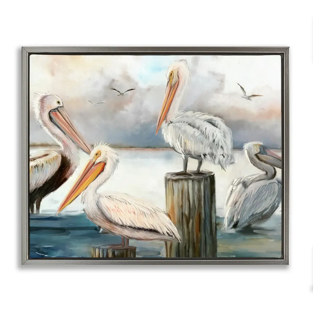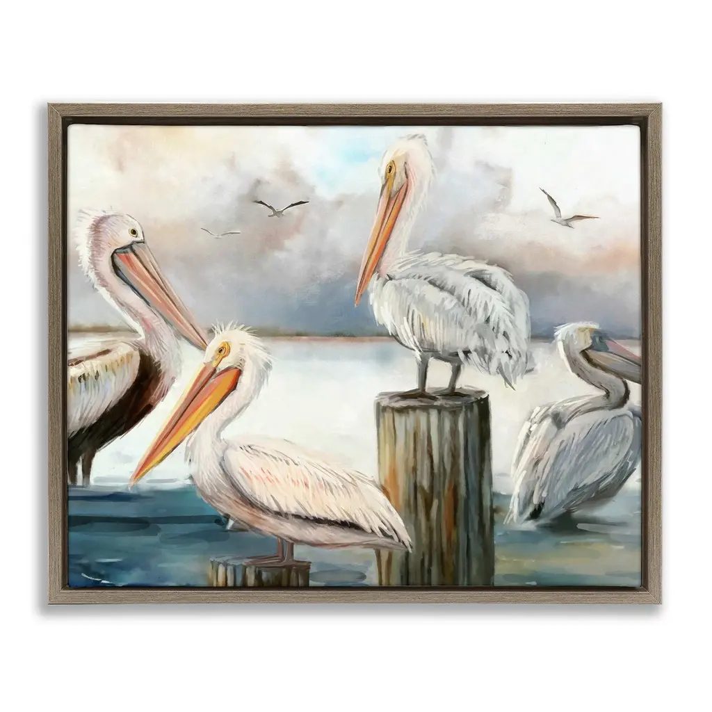 Elevate your home or office to the next level with Stupell Framed Floating Canvas Wall Art. Our premium hand-stretched canvas is mounted securely into a sturdy lightweight frame. The museum-style gap between the wrapped canvas and the box frame gives the illusion of floating artwork. Stupell Wall Art is made in the USA.Features: Dimensions: 21 x 1.7 x 17 Frame, 20 x 1.5 x 16 Canvas ArtFloating Frame Sizes Include Standard: 21 x 1.7 x 17 Oversized: 31 x 1.7 x 25Wall Art is Ready to Hang - No Installation or Hardware Needed. For Easy Set Up Lean or Layer Artwork on Shelf or Against Wall.Our elevated 1.7" Thick Floating Frame is the perfect complement to our canvas style Wall Art. We use only the highest quality inks in house with industry leading printing solutions. Canvas is hand stretched over a durable wood foundation and then mounted securly into a Modern Box Frame. Made in the USA.Artwork Relates To: Animal, Bird, Waterfowl, Pelican, Beak, Nautical, Beach, CoastalDesign by Ziwei Li