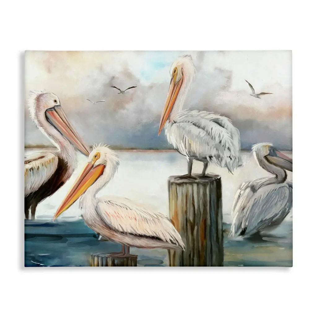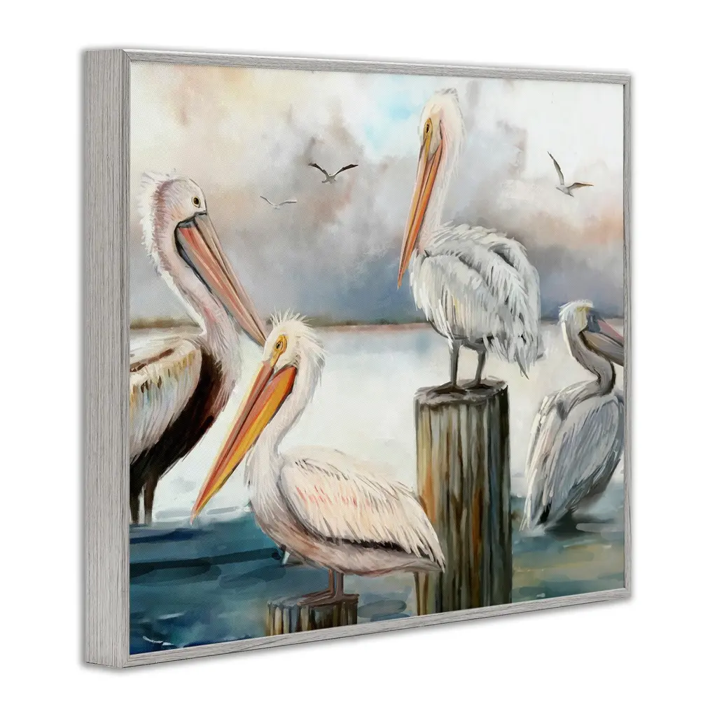 Stupell Pelicans Perched Cloudy Horizon Framed Giclee Art By Ziwei Li - 14 X 11 - Grey