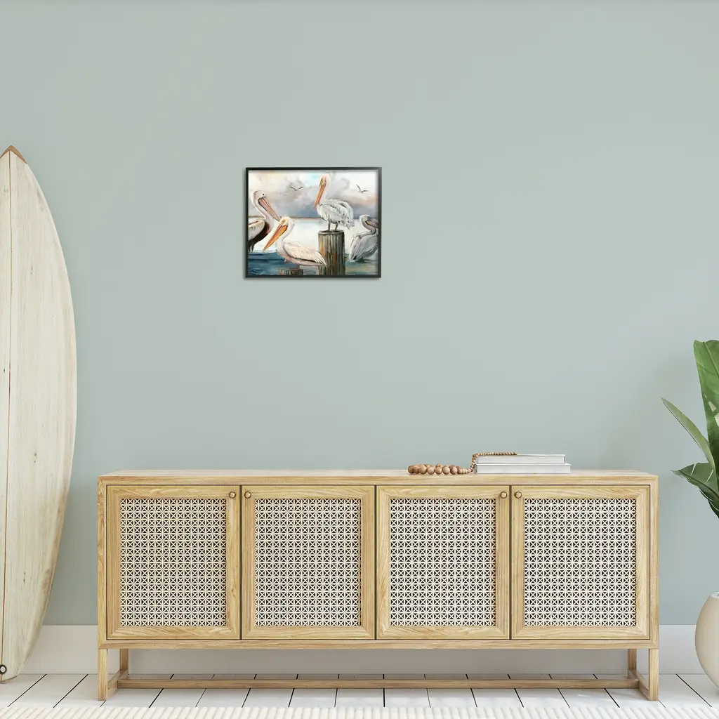 Add dimension to any room with our textured Framed Giclee Artwork. Our framed artwork is securely mounted into a 1.5-inch thick wood grain frame and ready to hang. Frames are available in three alluring styles: black, gray farmhouse and white. In addition, you should check out our oversized options if you want a statement piece. Stupell Wall Art is made in the USA.Features: Dimensions: 14 x 1.5 x 11 FramedFramed Giclee Sizes Include Standard: 14 x 1.5 x 11 Large: 20 x 1.5 x 16 Oversized: 30 x 1.5 x 24Wall Art is Ready to Hang - No Installation or Hardware Needed. For Easy Set Up Lean or Layer Artwork on Shelf or Against Wall.Our giclée prints are carefully mounted on a durable MDF backing, and then perfectly finished in a 1.5 inch thick woodgrain frame. Mounted frame colors include black, gray farmhouse and white. Made In USA.Artwork Relates To: Animal, Bird, Waterfowl, Pelican, Beak, Nautical, Beach, CoastalDesign by Ziwei Li