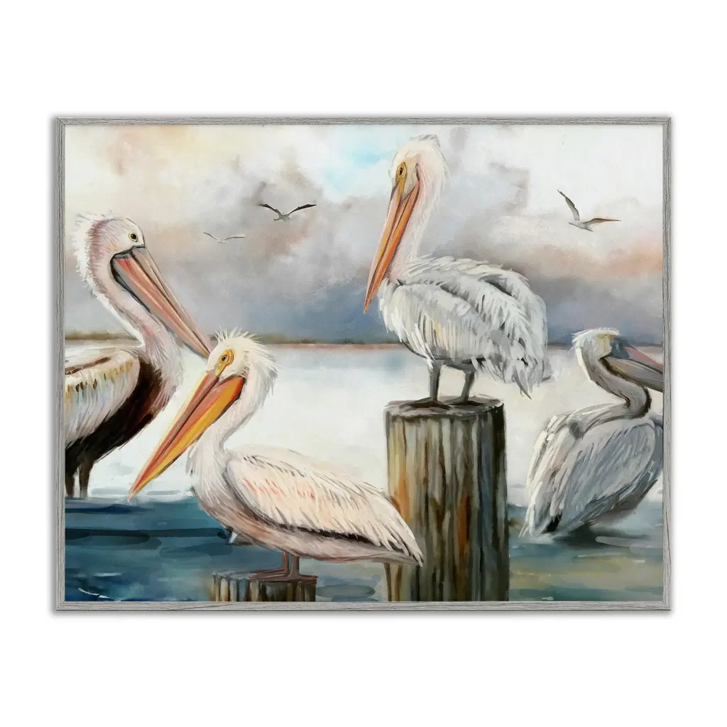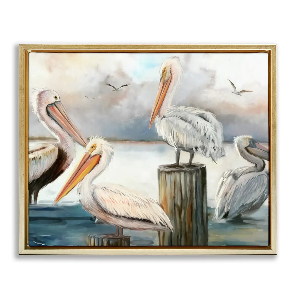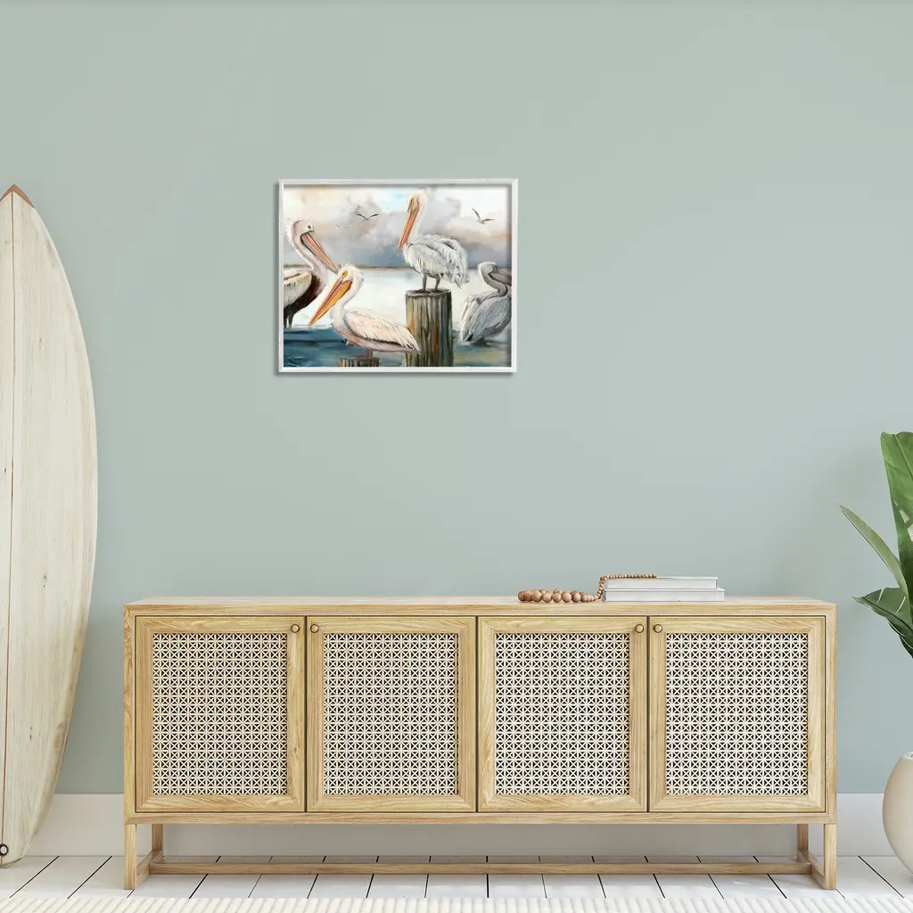 Stupell Pelicans Perched Cloudy Horizon Framed Giclee Art By Ziwei Li - 30 X 24 - White