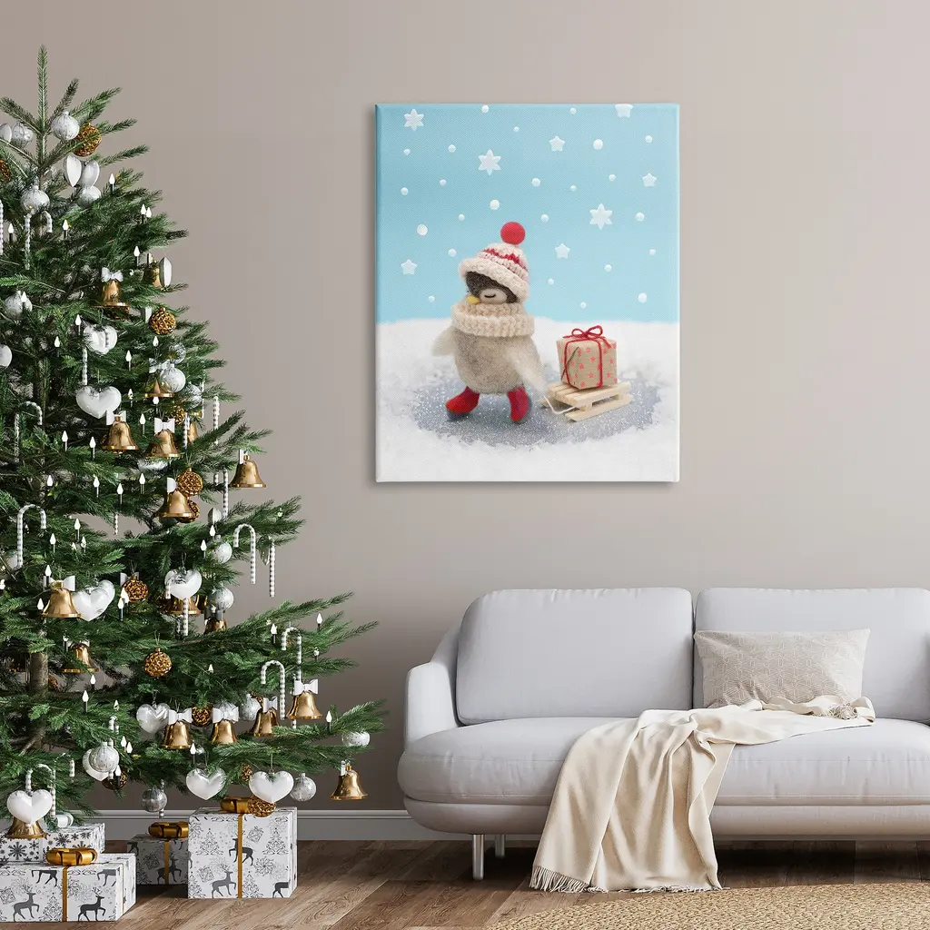 Stupell Penguin Christmas Present Sled Canvas Wall Art By Lemon & Sugar - 24 X 30