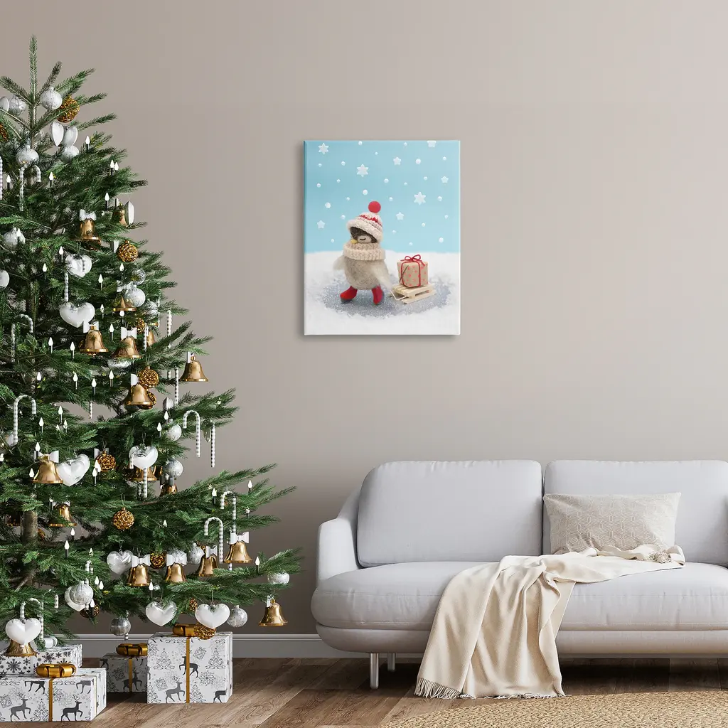 We create our stretched canvas to the highest standards. Using only the highest quality inks and canvas on Mimaki printers, we hand-cut and stretch each piece over a 1.5-inch thick wooden frame for hanging. As a result, the art comes ready to hang on the sturdy ledge with no installation required. Stupell Wall Art is made in the USA.Features: Dimensions: 16 x 1.5 x 20 InchesStretched Canvas Sizes Include Standard: 16 x 1.5 x 20 Large: 20 x 1.5 x 30 X-Large: 30 x 1.5 x 40 Oversized: 36 x 1.5 x 48Wall Art is Ready to Hang - No Installation or Hardware Needed. For Easy Set Up Lean or Layer Artwork on Shelf or Against Wall.Our stretched canvas is created with the highest standards. We use only the highest quality inks and canvas on our in house Mimaki printers, and then hand cut and stretch each piece over a 1.5 inch thick wooden frame for hanging. Made In USA.Artwork Relates To: Winter, Animal, Snow, Bird, Snowflake, Present, Gift, ChristmasDesign by Lemon & Sugar