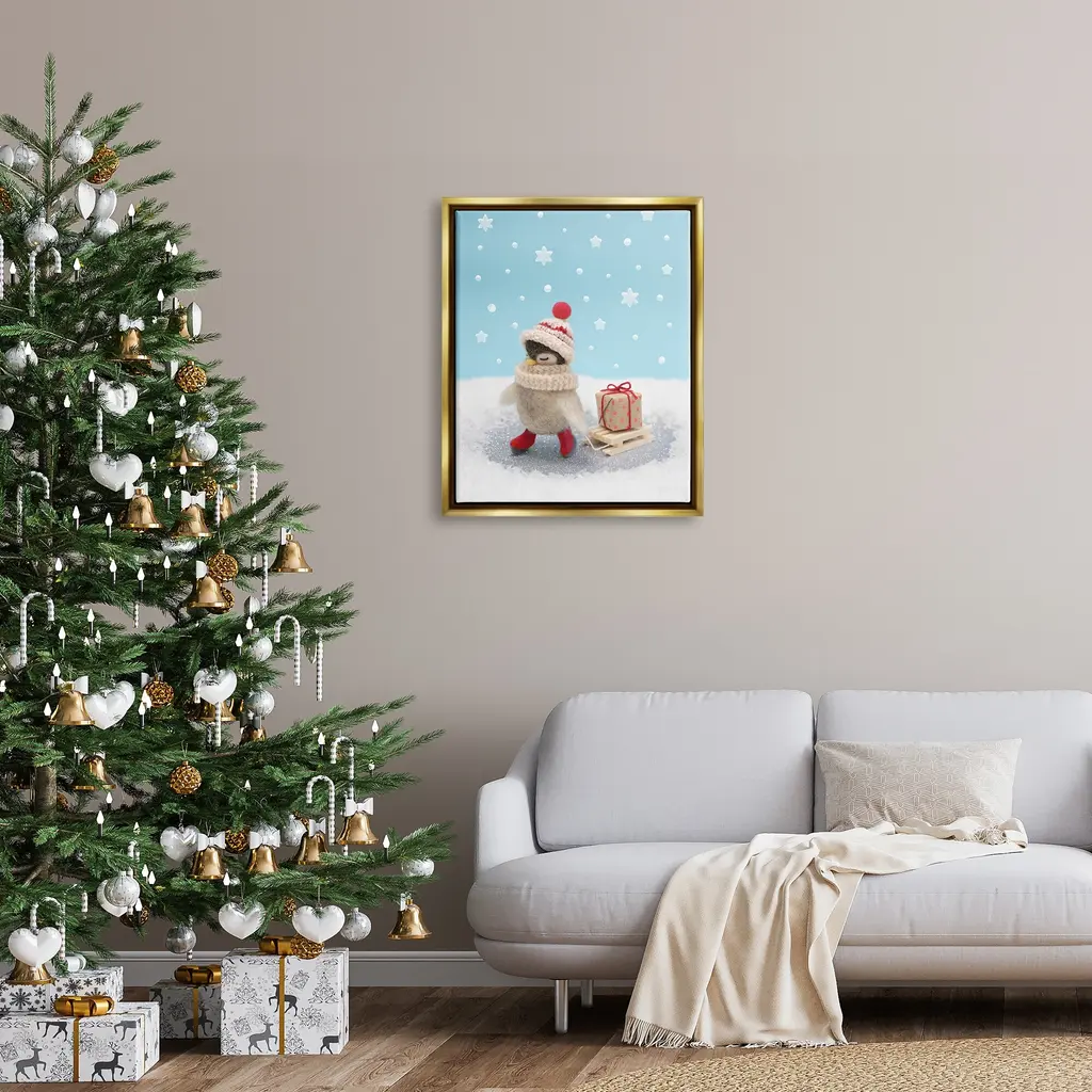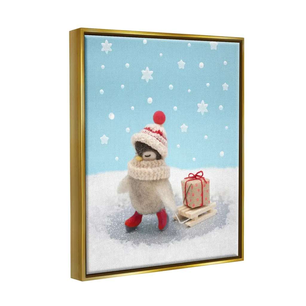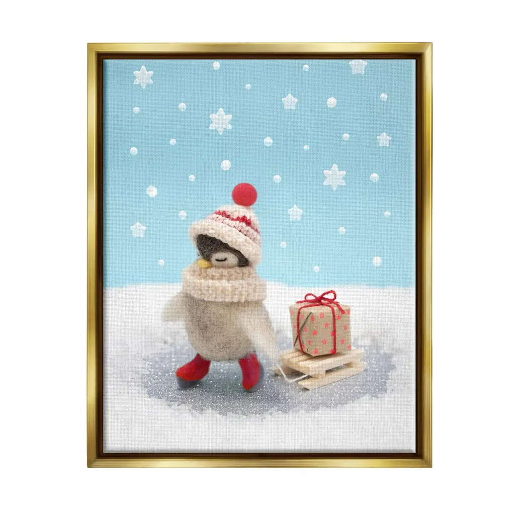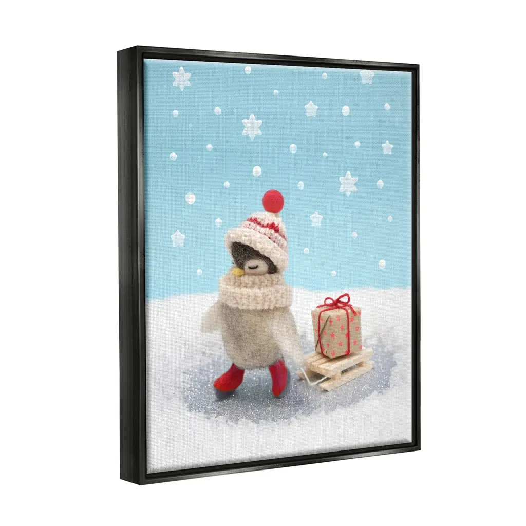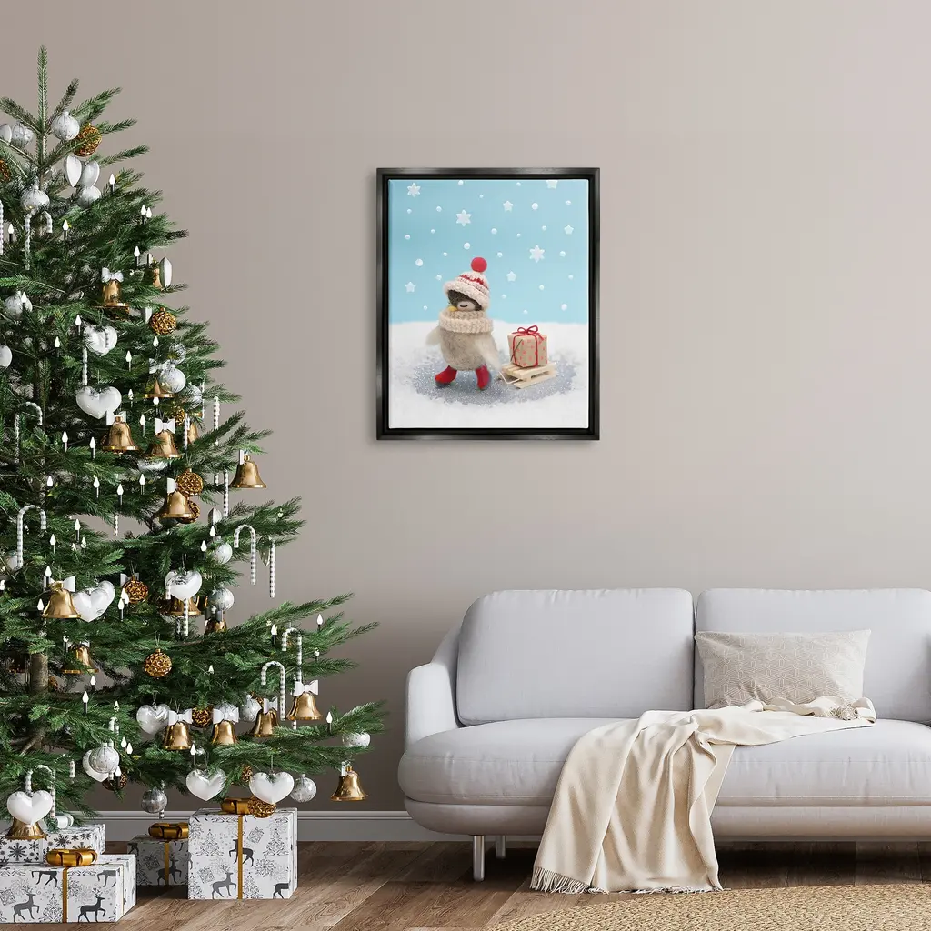 Elevate your home or office to the next level with Stupell Framed Floating Canvas Wall Art. Our premium hand-stretched canvas is mounted securely into a sturdy lightweight frame. The museum-style gap between the wrapped canvas and the box frame gives the illusion of floating artwork. Stupell Wall Art is made in the USA.Features: Dimensions: 17 x 1.7 x 21 Frame, 16 x 1.5 x 20 Canvas ArtFloating Frame Sizes Include Standard: 17 x 1.7 x 21 Oversized: 25 x 1.7 x 31Wall Art is Ready to Hang - No Installation or Hardware Needed. For Easy Set Up Lean or Layer Artwork on Shelf or Against Wall.Our elevated 1.7" Thick Floating Frame is the perfect complement to our canvas style Wall Art. We use only the highest quality inks in house with industry leading printing solutions. Canvas is hand stretched over a durable wood foundation and then mounted securly into a Modern Box Frame. Made in the USA.Artwork Relates To: Winter, Animal, Snow, Bird, Snowflake, Present, Gift, ChristmasDesign by Lemon & Sugar