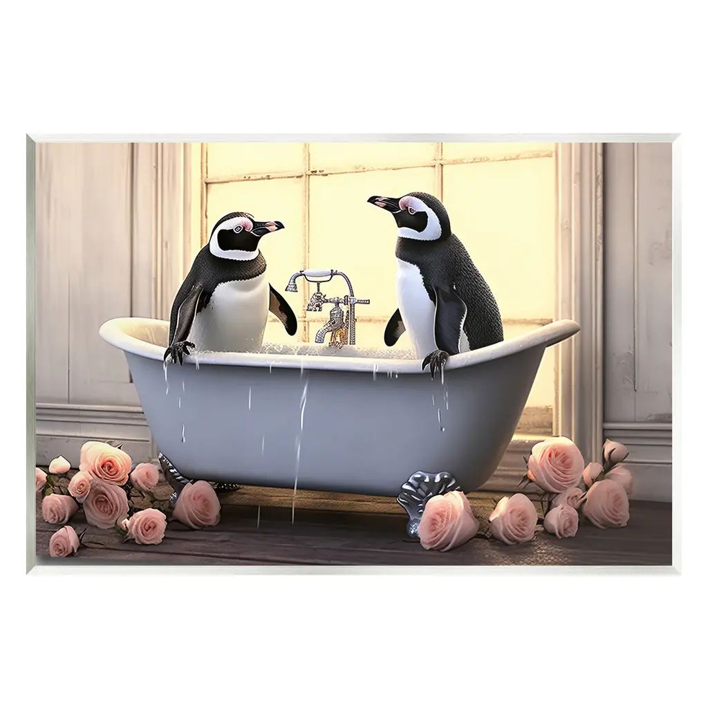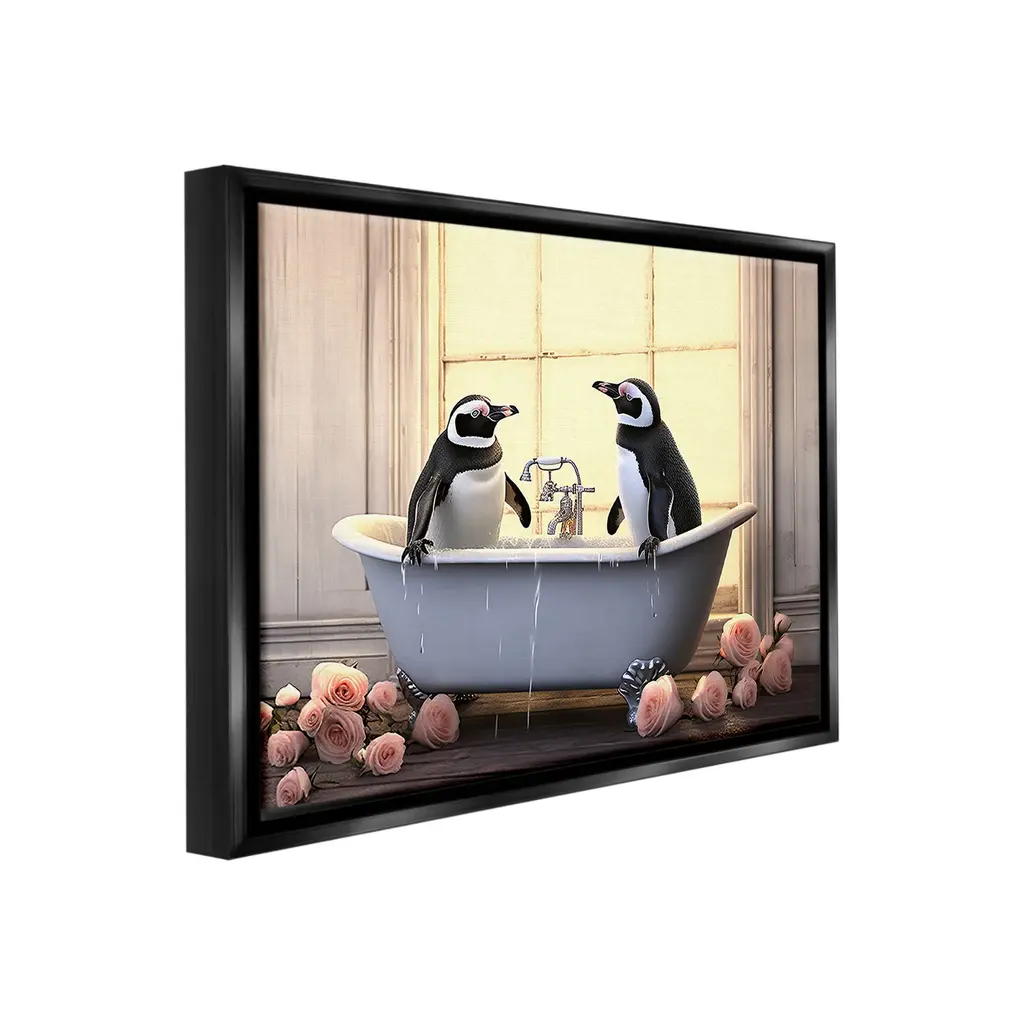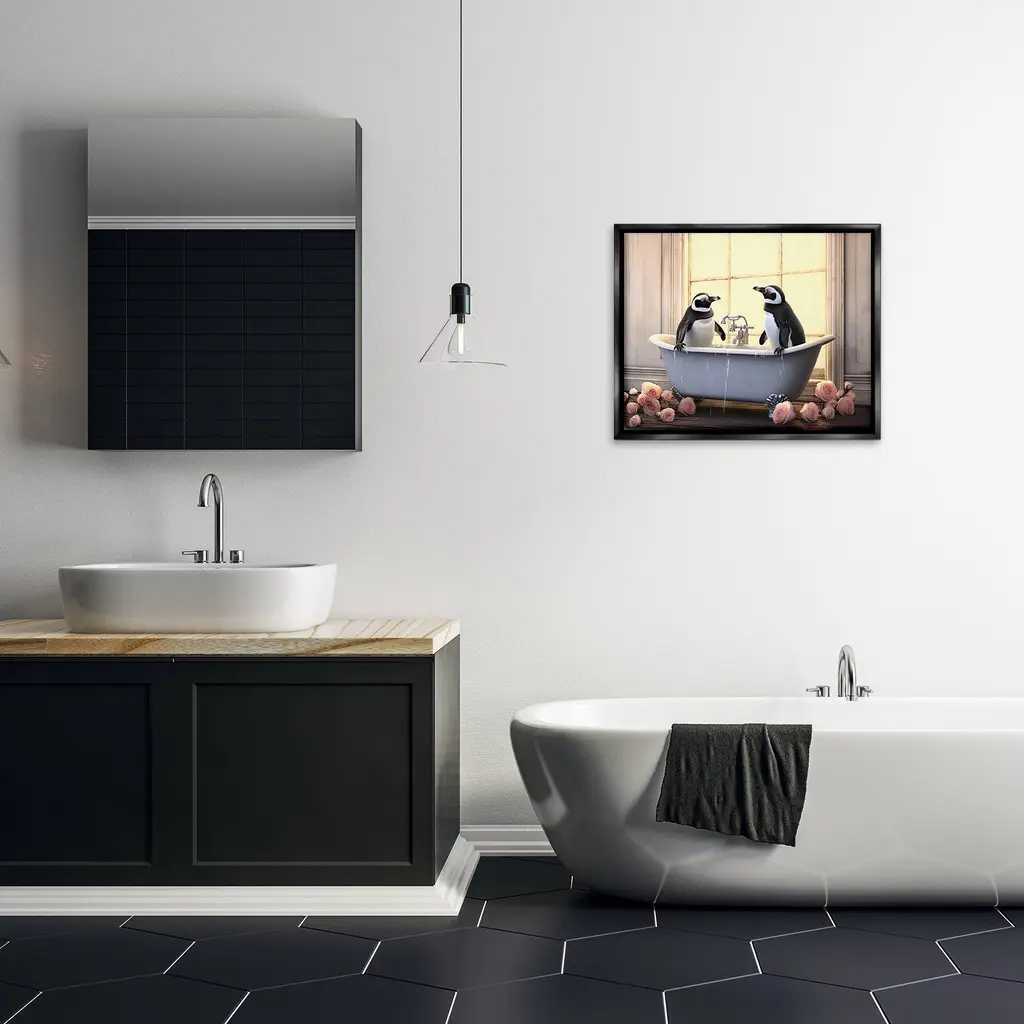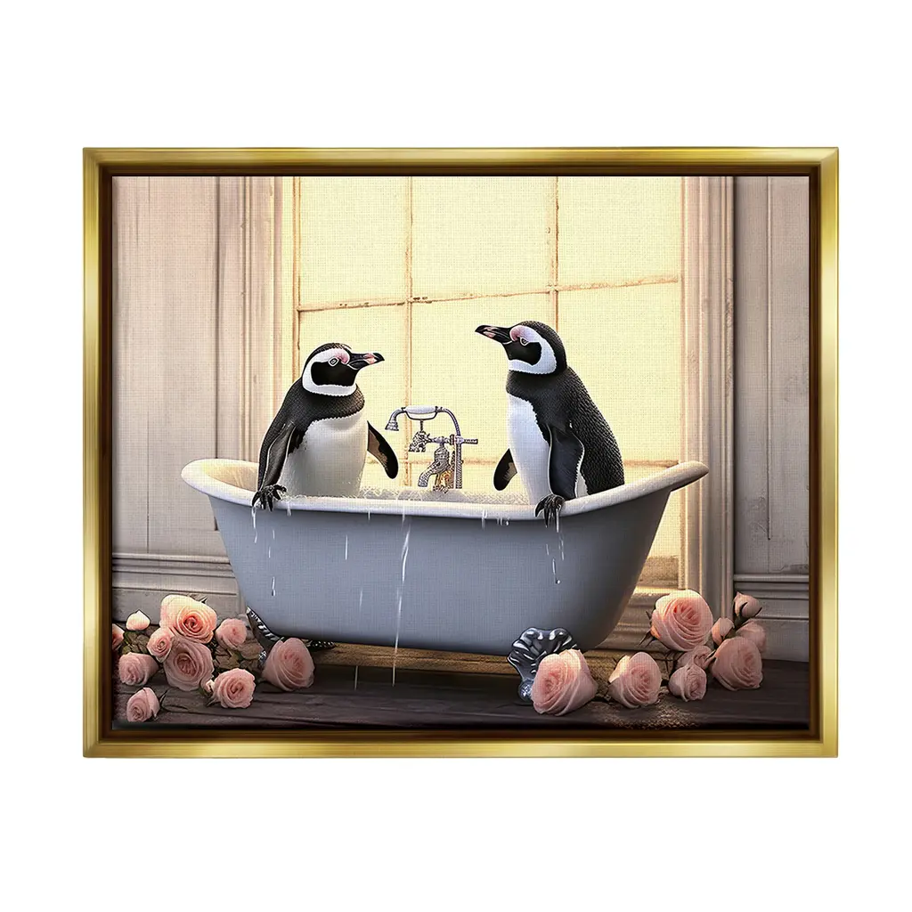 Elevate your home or office to the next level with Stupell Framed Floating Canvas Wall Art. Our premium hand-stretched canvas is mounted securely into a sturdy lightweight frame. The museum-style gap between the wrapped canvas and the box frame gives the illusion of floating artwork. Stupell Wall Art is made in the USA.Features: Dimensions: 21 x 1.7 x 17 Frame, 20 x 1.5 x 16 Canvas ArtFloating Frame Canvas Products are available in sizes 21"x17" and 31"x25". All Floating Frame Canvas Products have a 1.7" Depth.Wall Art is Ready to Hang with Hardware Free Hanging. No Installation required. For Easy Set Up Lean or Layer Artwork on Shelf or Against Wall. Artwork is Permently Fixed into the Frame.Our elevated 1.7" Thick Floating Frame is the perfect complement to our canvas style Wall Art. We use only the highest quality inks in house with industry leading printing solutions. Canvas is hand stretched over a durable wood foundation and then mounted securly into a Modern Box Frame. Made in the USA.Artwork Relates To: Bathroom, Animal, Bird, Penguin, Bathtub, Tub, Flower, BlossomDesign by Lazar Studio