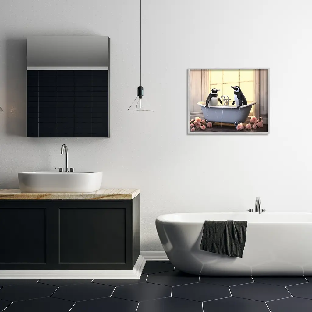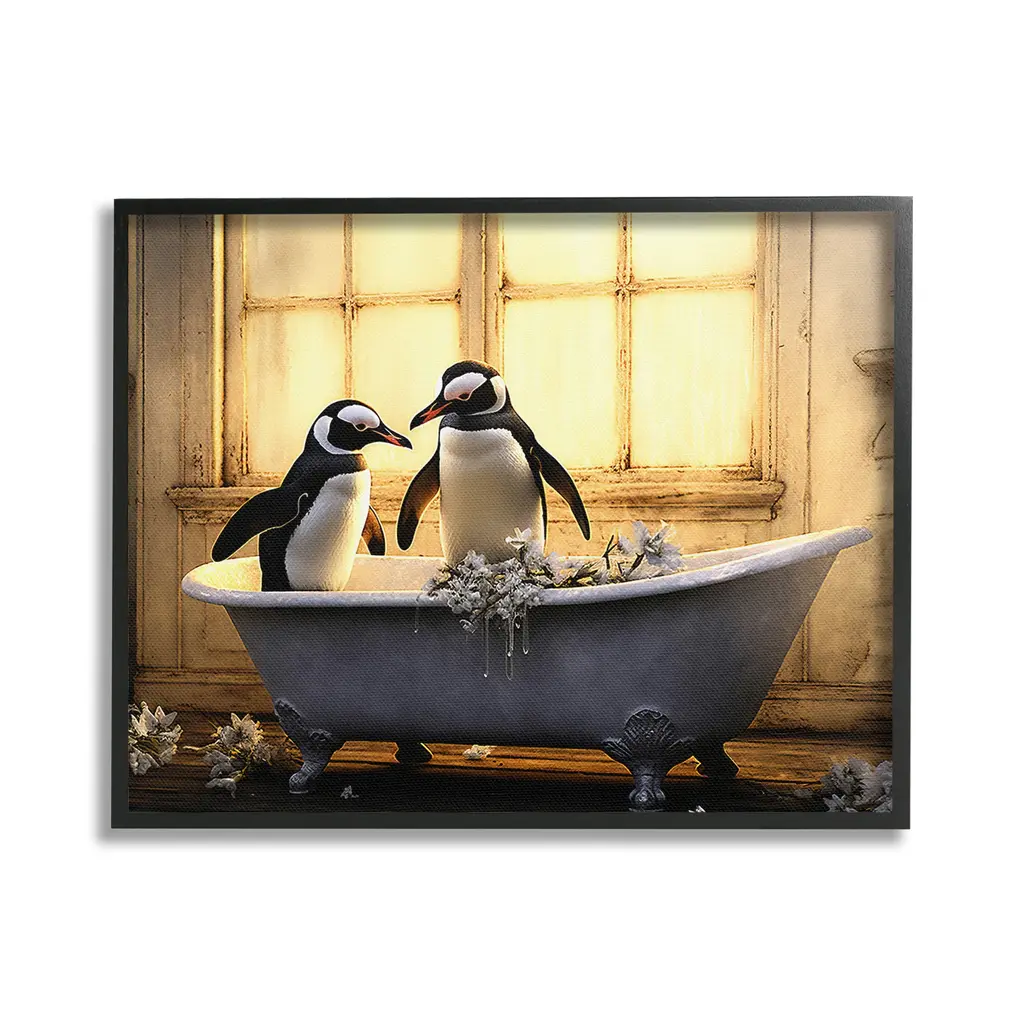 Add dimension to any room with our textured Framed Giclee Artwork. Our framed artwork is securely mounted into a 1.5-inch thick wood grain frame and ready to hang. Frames are available in three alluring styles: black, gray farmhouse and white. In addition, you should check out our oversized options if you want a statement piece. Stupell Wall Art is made in the USA.Features: Dimensions: 14 x 1.5 x 11 FramedFramed Giclee Products are available in the sizes 14"x11", 20"x16" or 30"x24". All Framed Giclee Products have a 1.5" Depth. Wall Art is Ready to Hang with Hardware Free Hanging. No installation required. For Easy Set Up Lean or Layer Artwork on Shelf or Against Wall.Our giclée prints are carefully mounted on a durable MDF backing, and then perfectly finished in a 1.5 inch thick woodgrain frame. Mounted frame colors include black, gray farmhouse and white. Made In USA.Artwork Relates To: Bathroom, Animal, Bird, Penguin, Bathtub, Tub, Flower, BlossomDesign by Lazar Studio