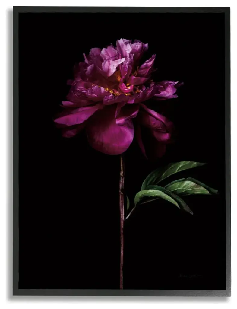 Stupell Peony On Black Wall Plaque Art Design By Danhui Nai - 11 X 14